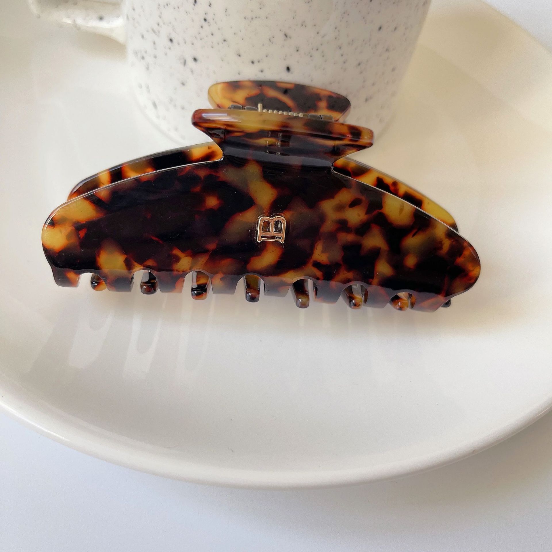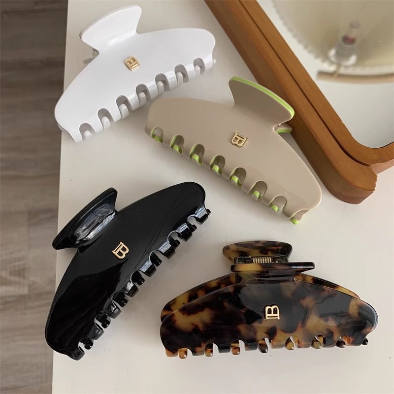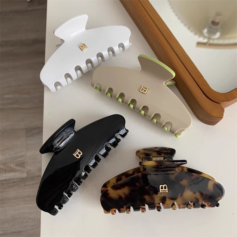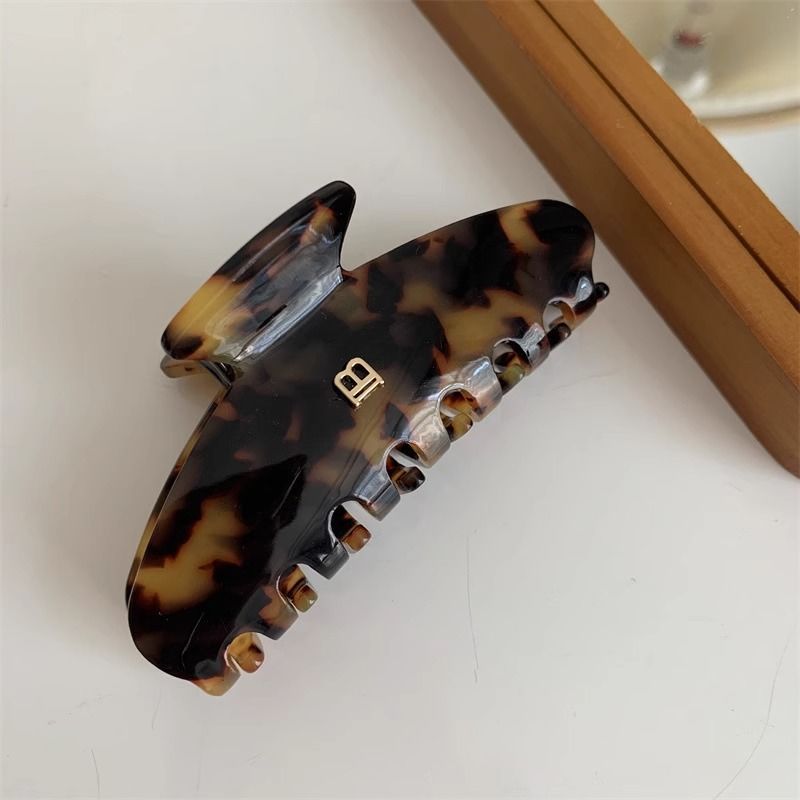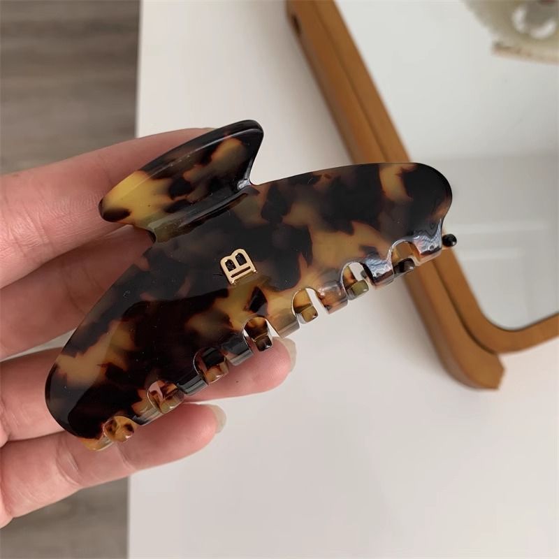 24 새로운 프랑스 Acetic Acid Arc 상어 클립 레오파드 편지 B 큰 잡아 클립 고급 감각 헤어핀 뒤 머리 클립