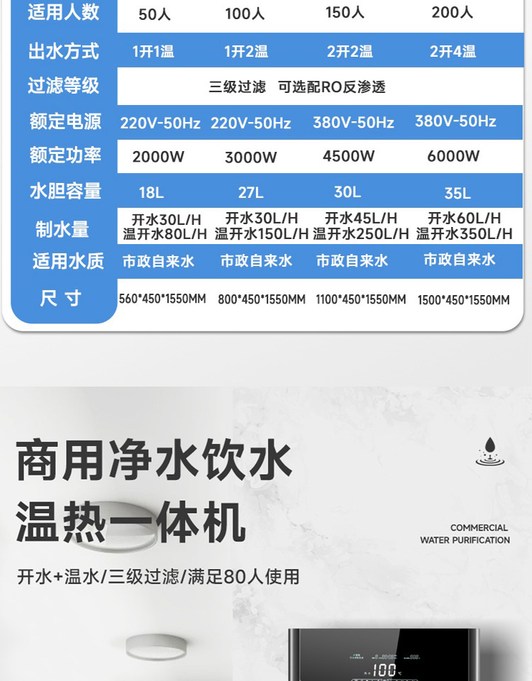 고급 공공 물 디스펜서 따뜻한 단위 공장 캠퍼스 지능형 물 보일러 단계별 5 단계 정수기 직접 음주