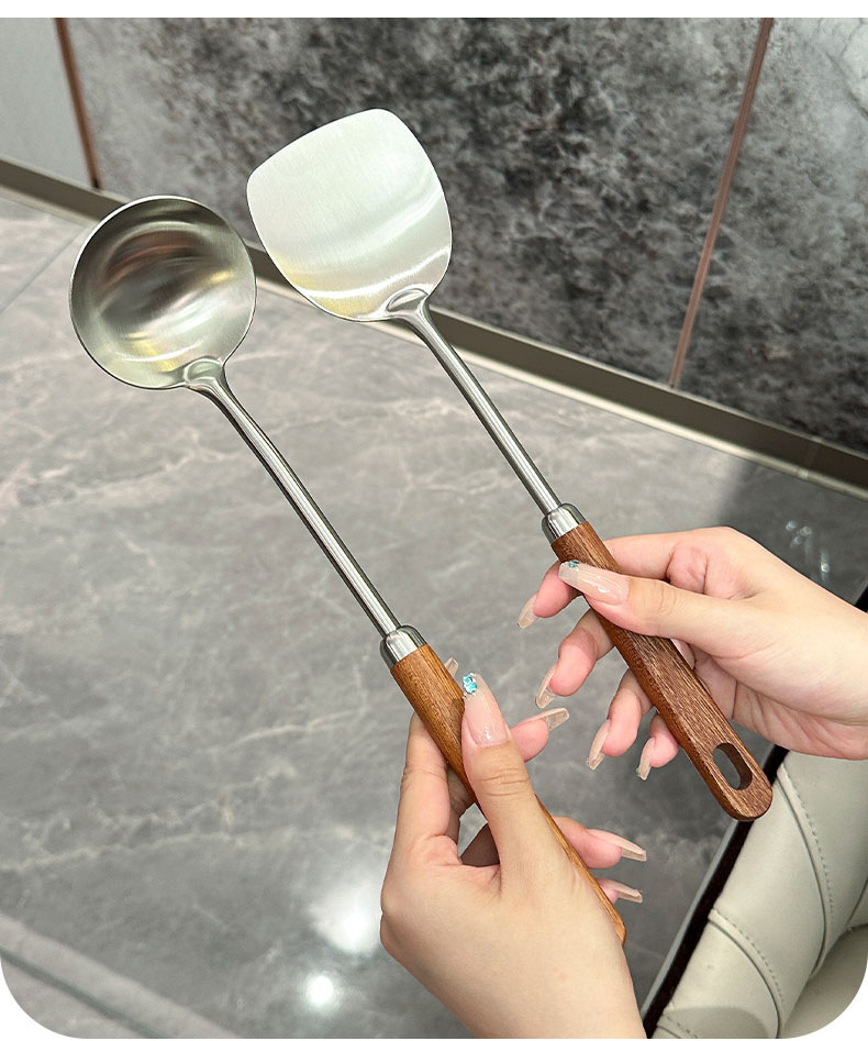 304 스테인리스 스틸 냄비 주걱, 흑단 손잡이, 화상 방지 볶음 숟가락, 가정용 국자, 거름망, 긴 손잡이 요리용 주걱