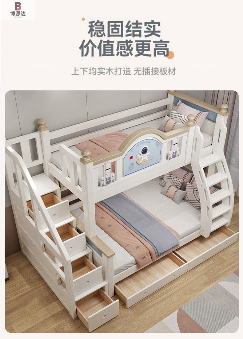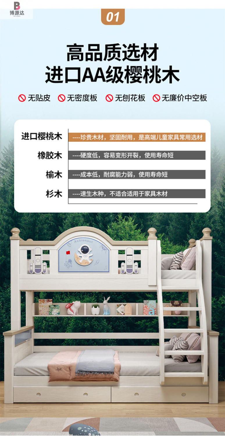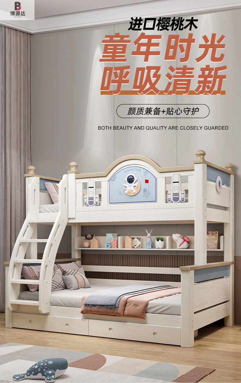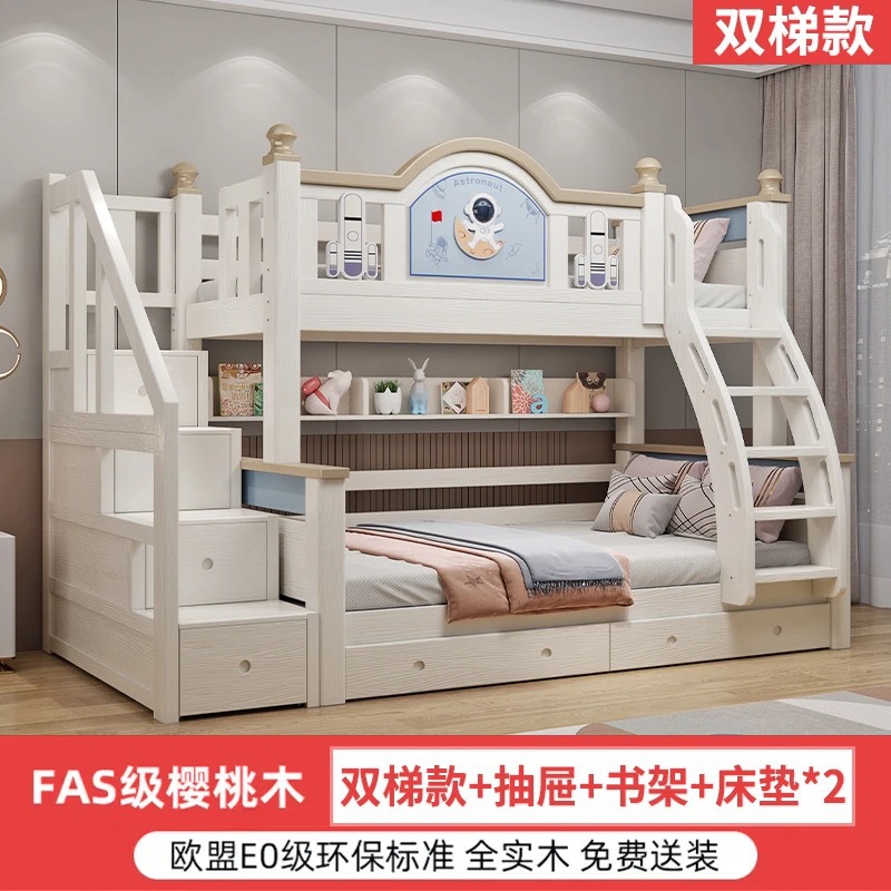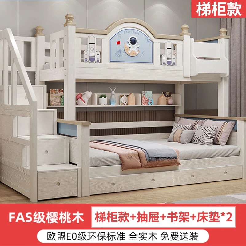 체리 우드 벙크 침대 솔리드 우드 벙크 베드 홈 높고 낮은 2 층 어린이 침대 상단 및 하단 침대 성인 어린이 및 어머니 높고 낮은 침대스토어 가기