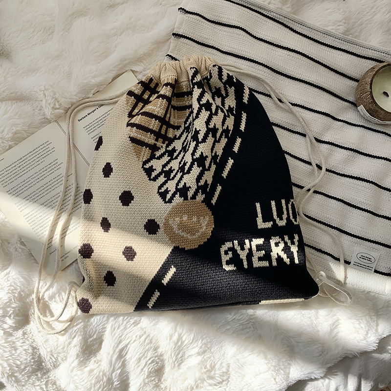 여성용 백팩, 고급 가을 겨울 소녀의 새로운 틈새 디자인, 대용량 통근 니트 가방, 우븐 포켓스토어 가기