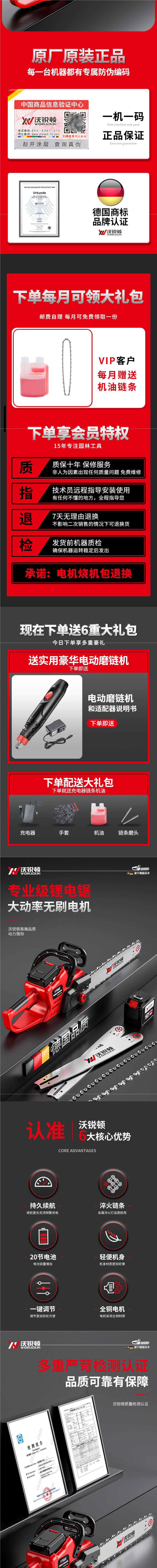 • 신형 42V [20셀 대용량] 배터리 3개, 충전 3개 - [가이드 플레이트 1개, 수입 체인 4개 포함] 무료 고급 전동 그라인더 세트