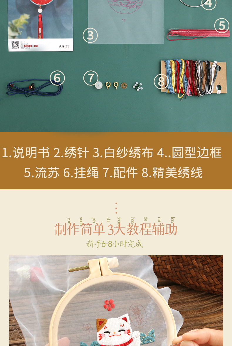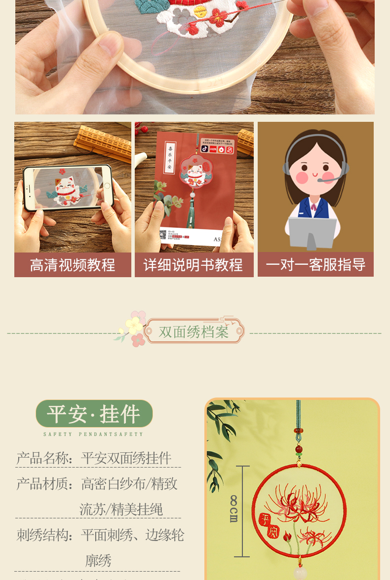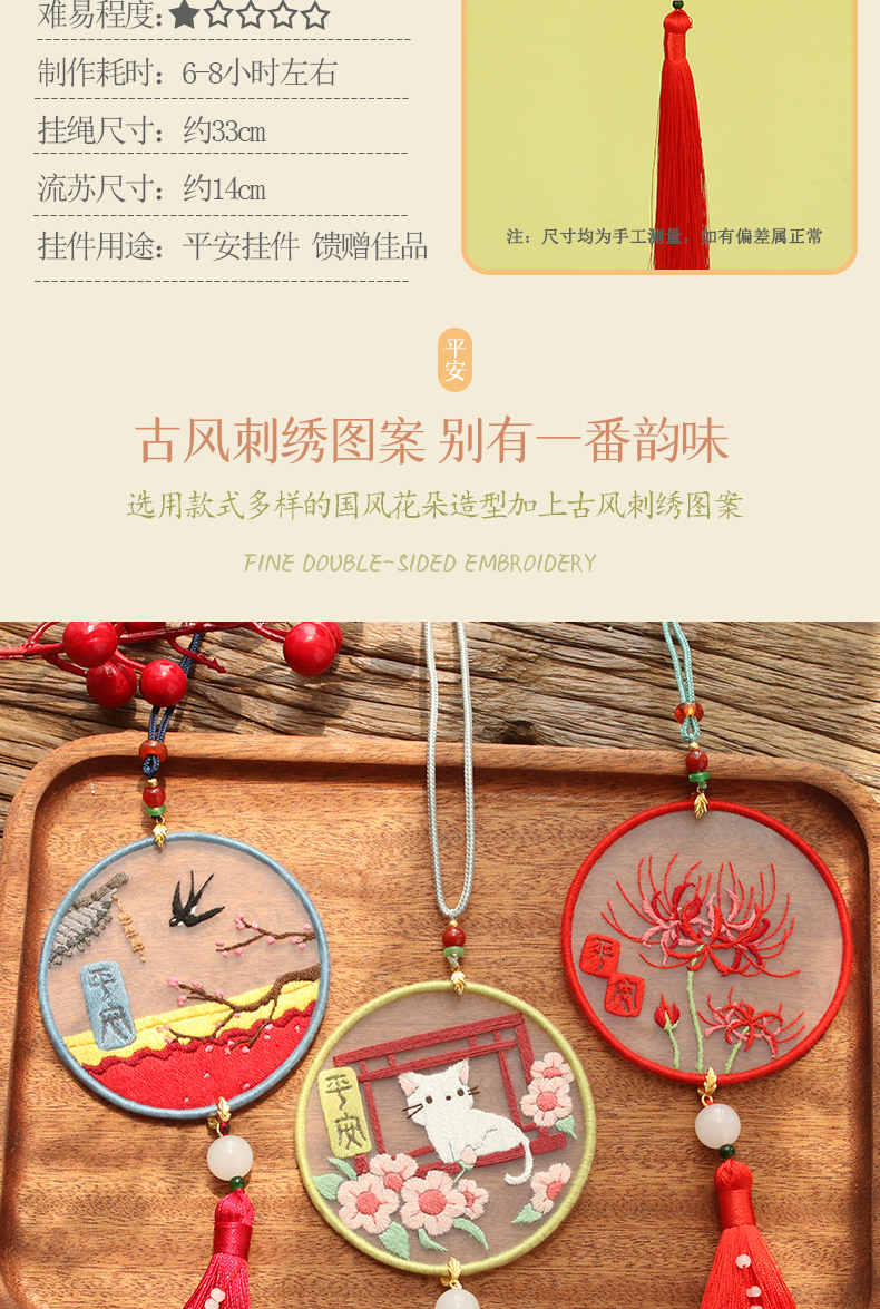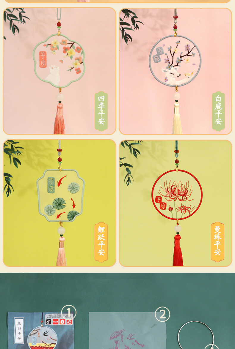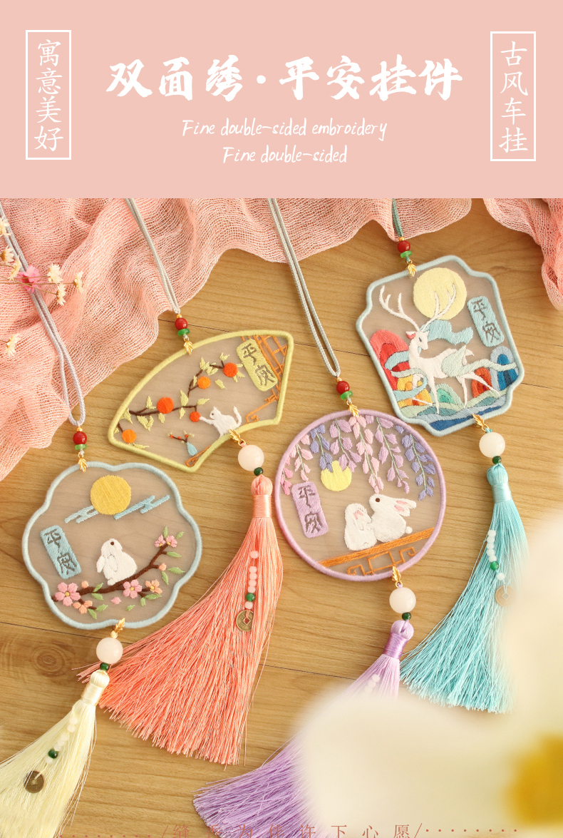 자수 북마크 DIY 소재 가방 핑 푸 양면 자수 자동차 펜던트 자수 핑 푸 보내기 남자 친구 완바이스토어 가기