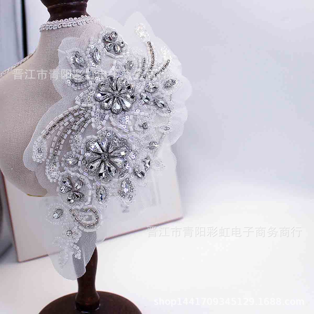 손으로 꿰매는 DIY 자수 유리 다이아몬드 캣워크 어깨 장식 치파오 원피스 원피스 웨딩 원피스 다이아몬드 구슬 액세서리