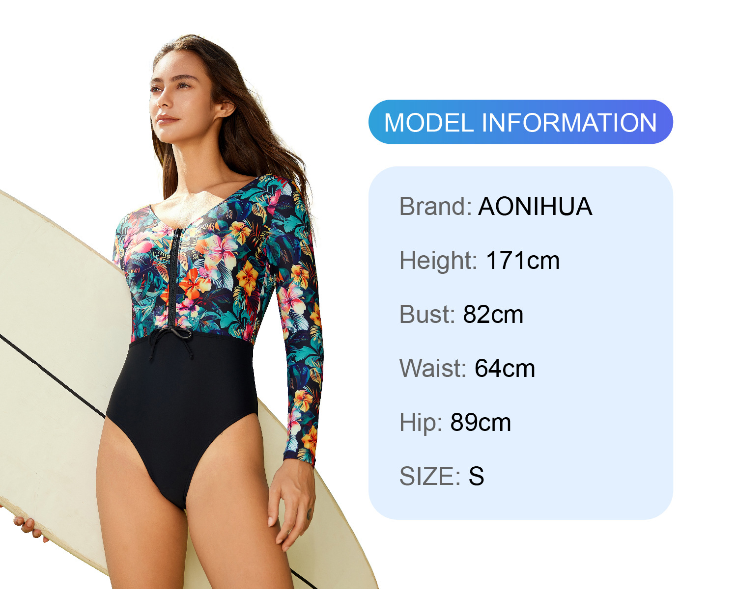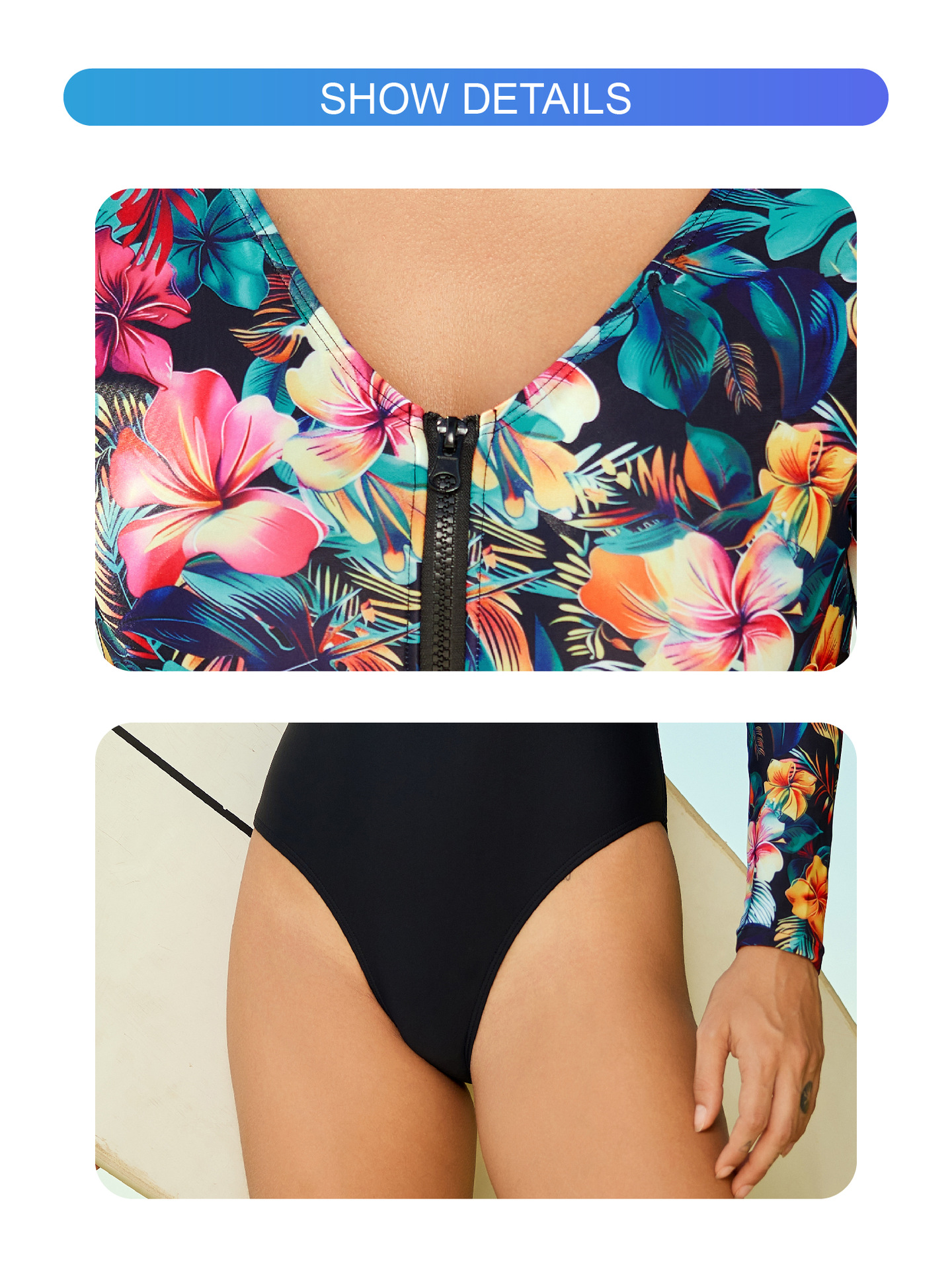 유럽과 미국의 대외 무역 원피스 긴팔 서핑 세트 자외선 차단제 여성 목욕 세트 다이빙 세트 섹시한 패션 수영복 오니 꽃 2403