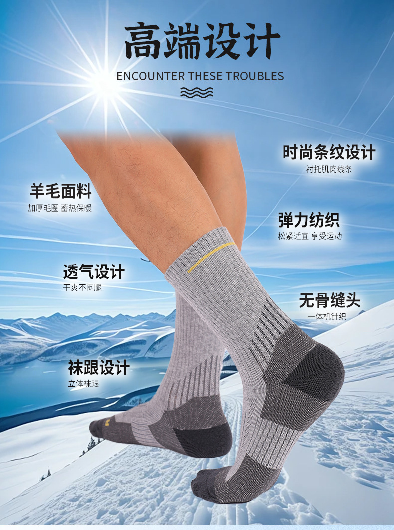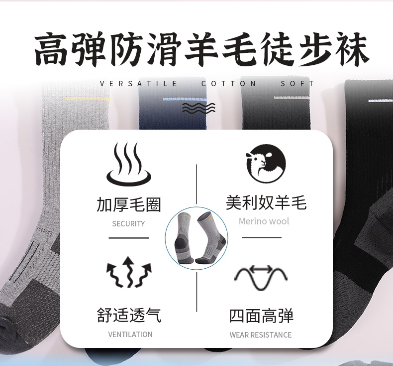 수건 바닥 스포츠 양말 남성 미드 튜브 야외 두꺼운 하이킹 양말 따뜻한 메리노 울 양말 맞춤형스토어 가기