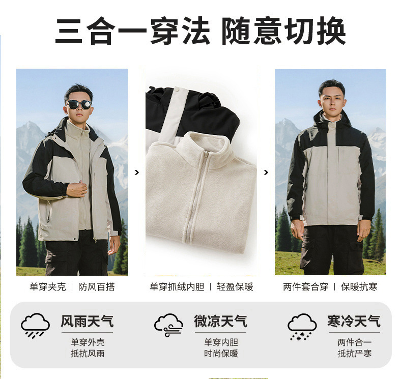 가을과 겨울 자켓 하이 퀄리티 야외 투피스 방수 방풍 재킷 등산 세트 연인을위한 3 대 1 재킷스토어 가기
