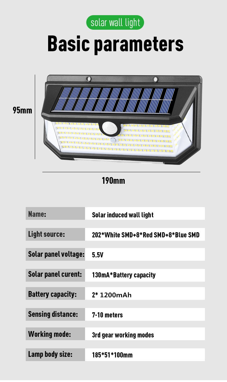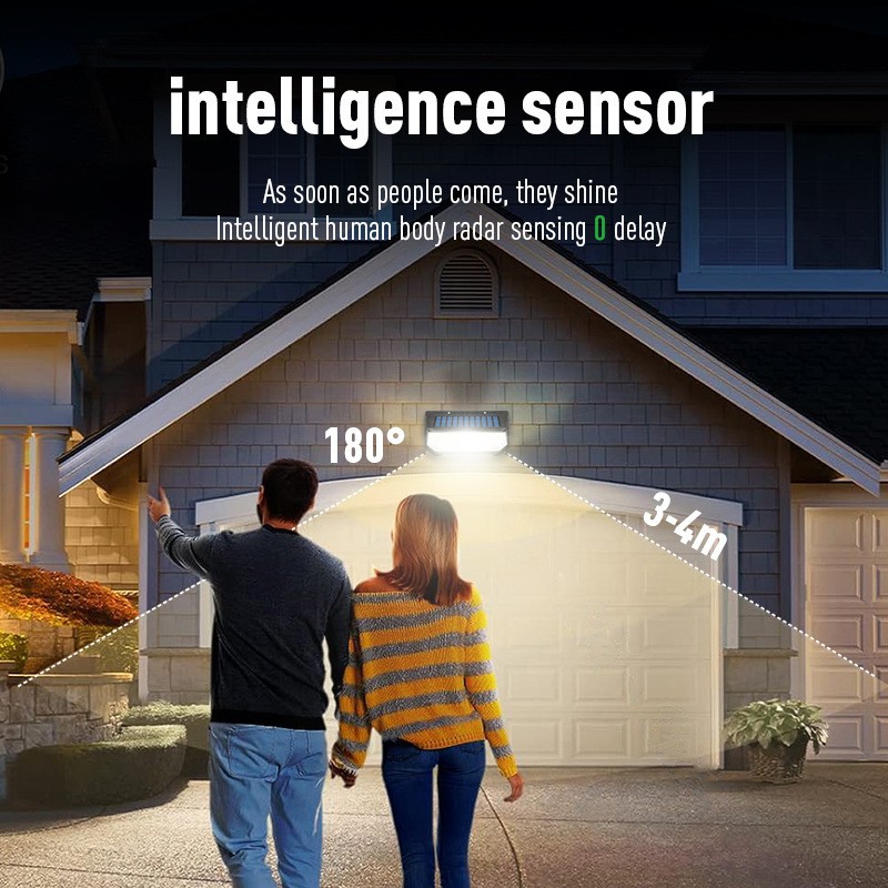 국경 간 에너지 절약형 가정용 태양열 충전 인체 유도 야외 안뜰 조명 가로등 밝은 벽 램프 방수 램프