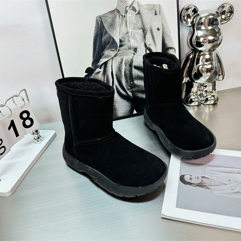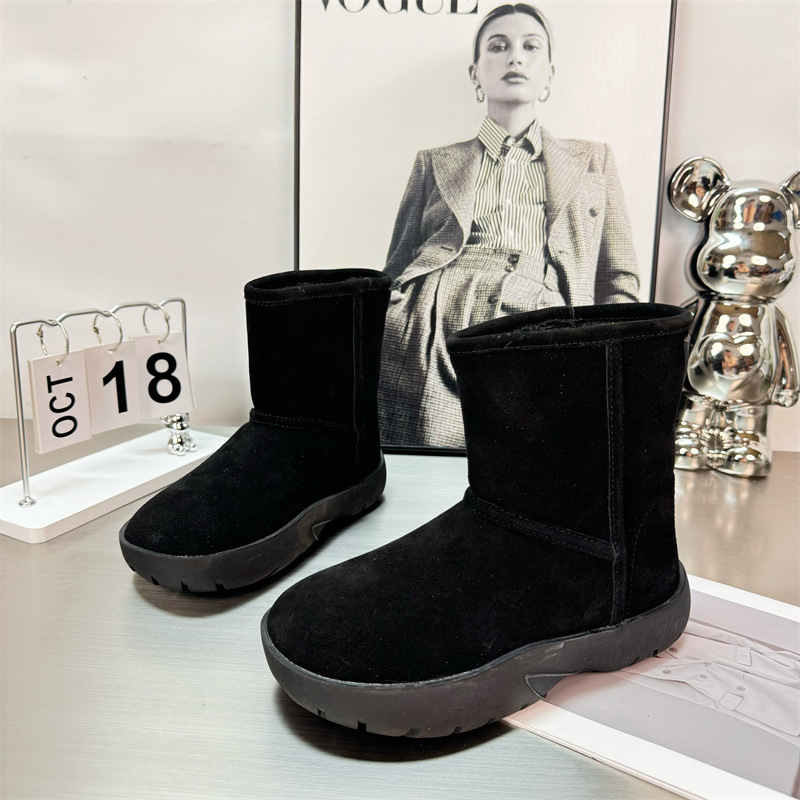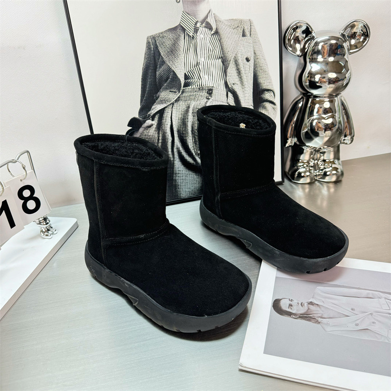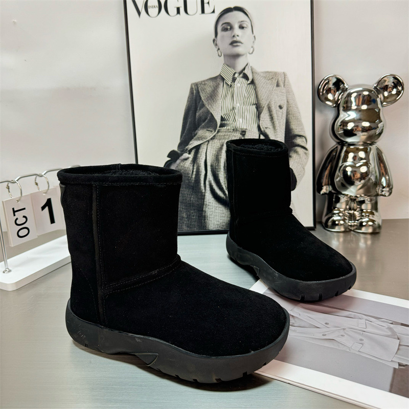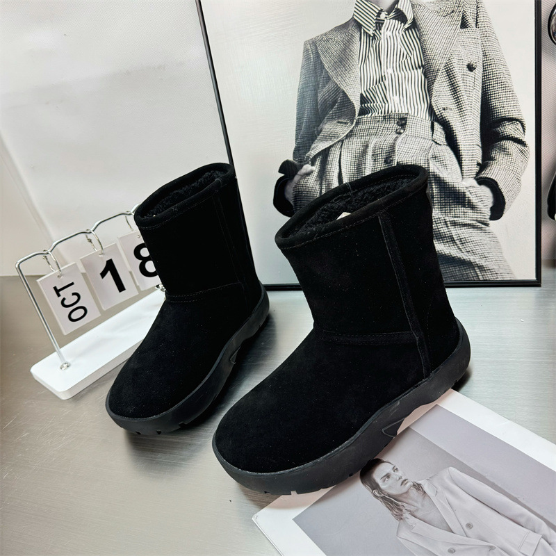 2024 새로운 겨울 두꺼운 밑창 미드 배럴 스노우 부츠 여성용 양고기 마오 마오 쇼트 부츠 내부 높이 미끄럼 방지 기모 따뜻한 코튼 신발