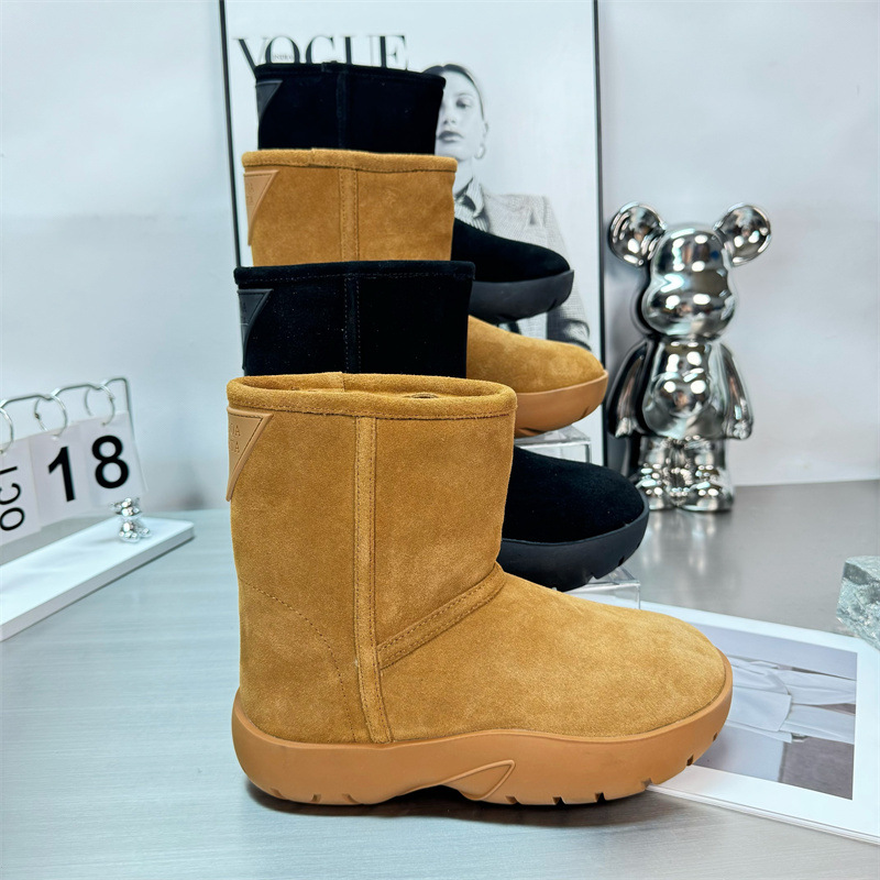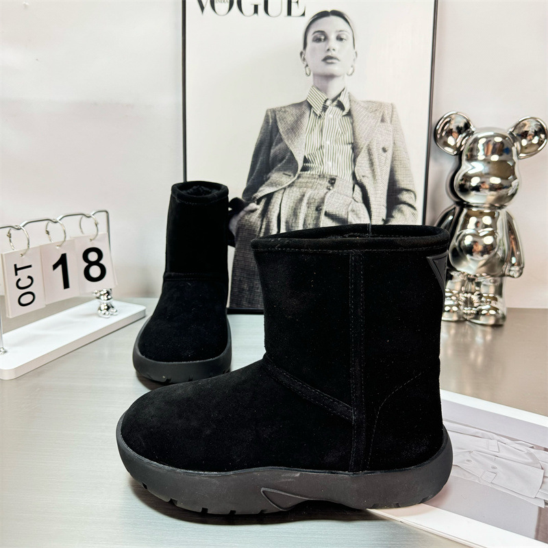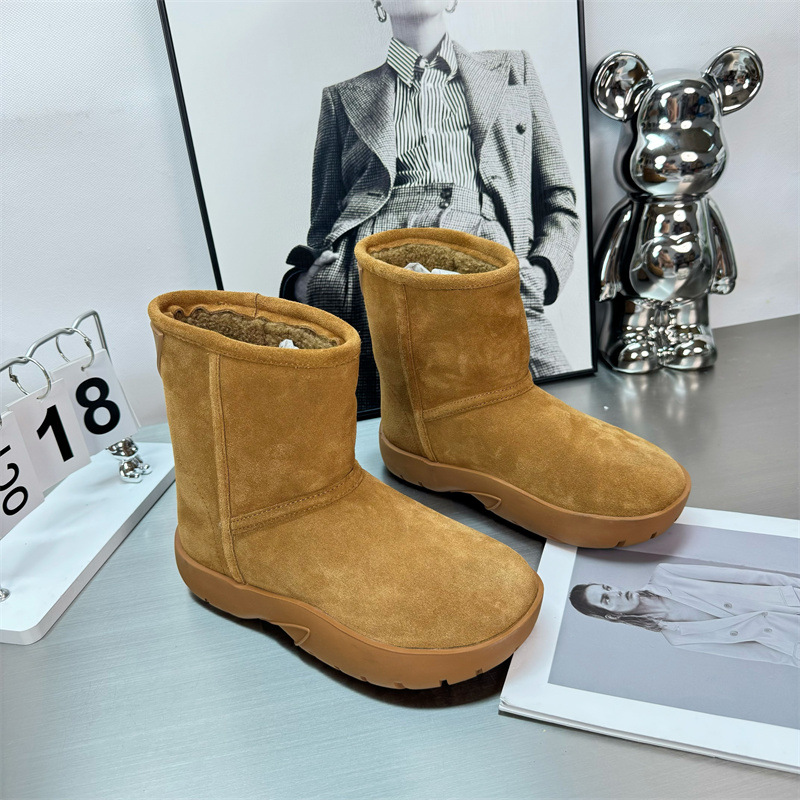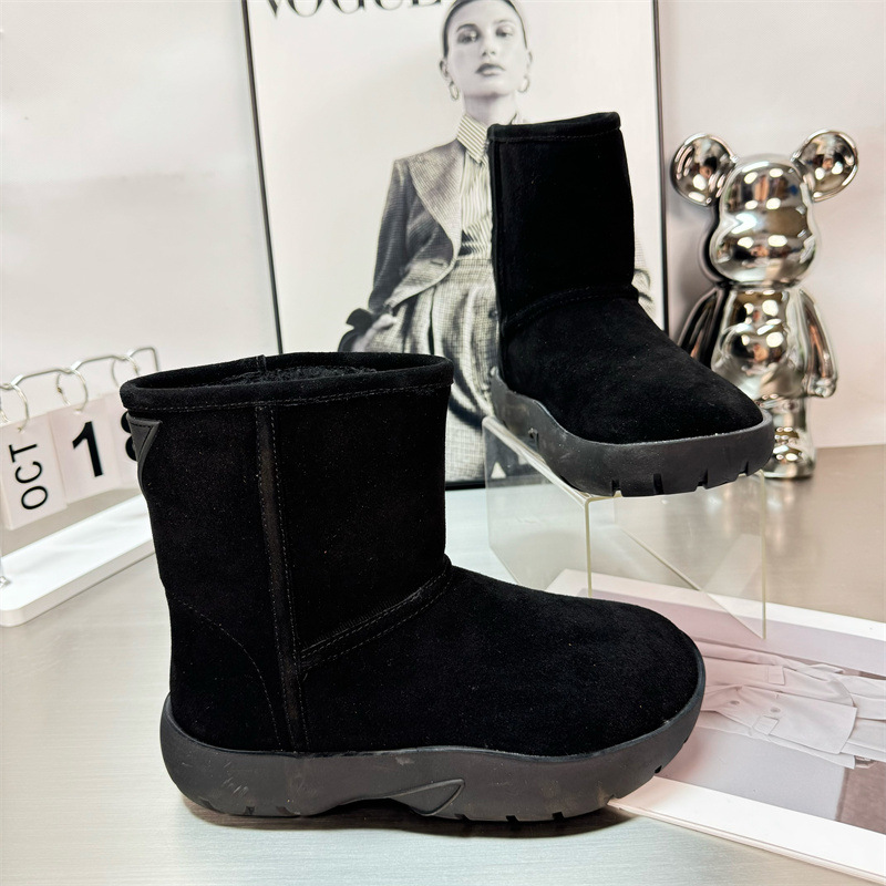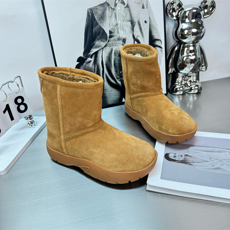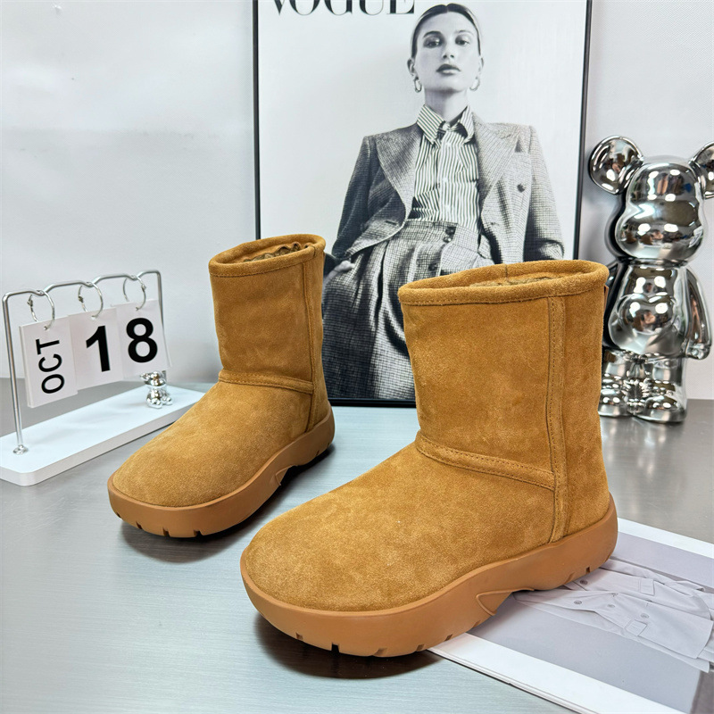 2024 새로운 겨울 두꺼운 밑창 미드 배럴 스노우 부츠 여성용 양고기 마오 마오 쇼트 부츠 내부 높이 미끄럼 방지 기모 따뜻한 코튼 신발