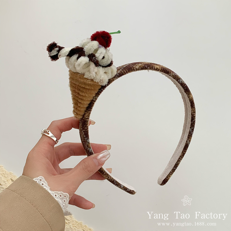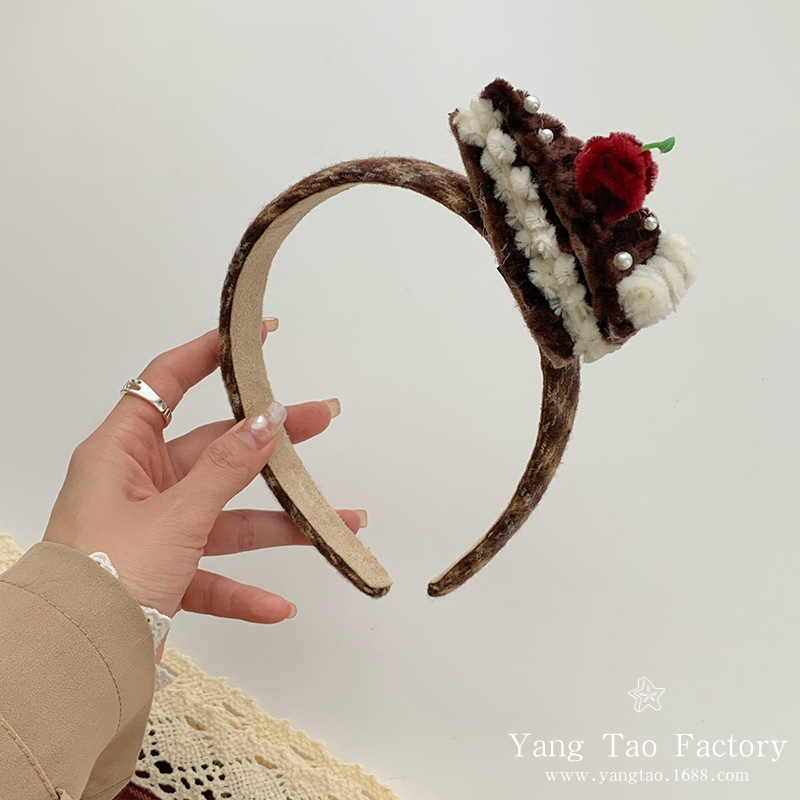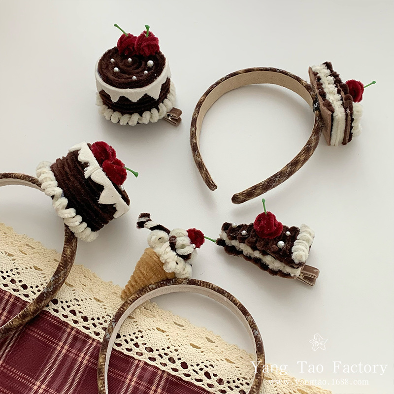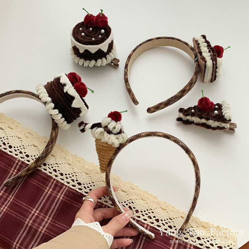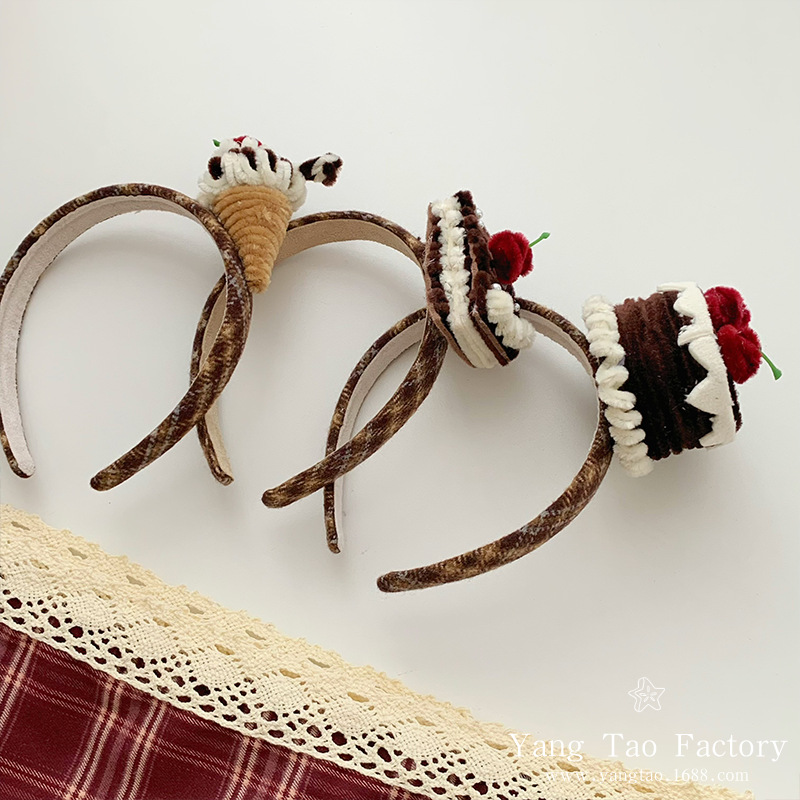 원래 손으로 만든 초콜릿 케이크 헤어 후프 생일 작은 케이크 헤어 액세서리 헤어 후프 파티 인터넷 축하 파티 헤드웨어
