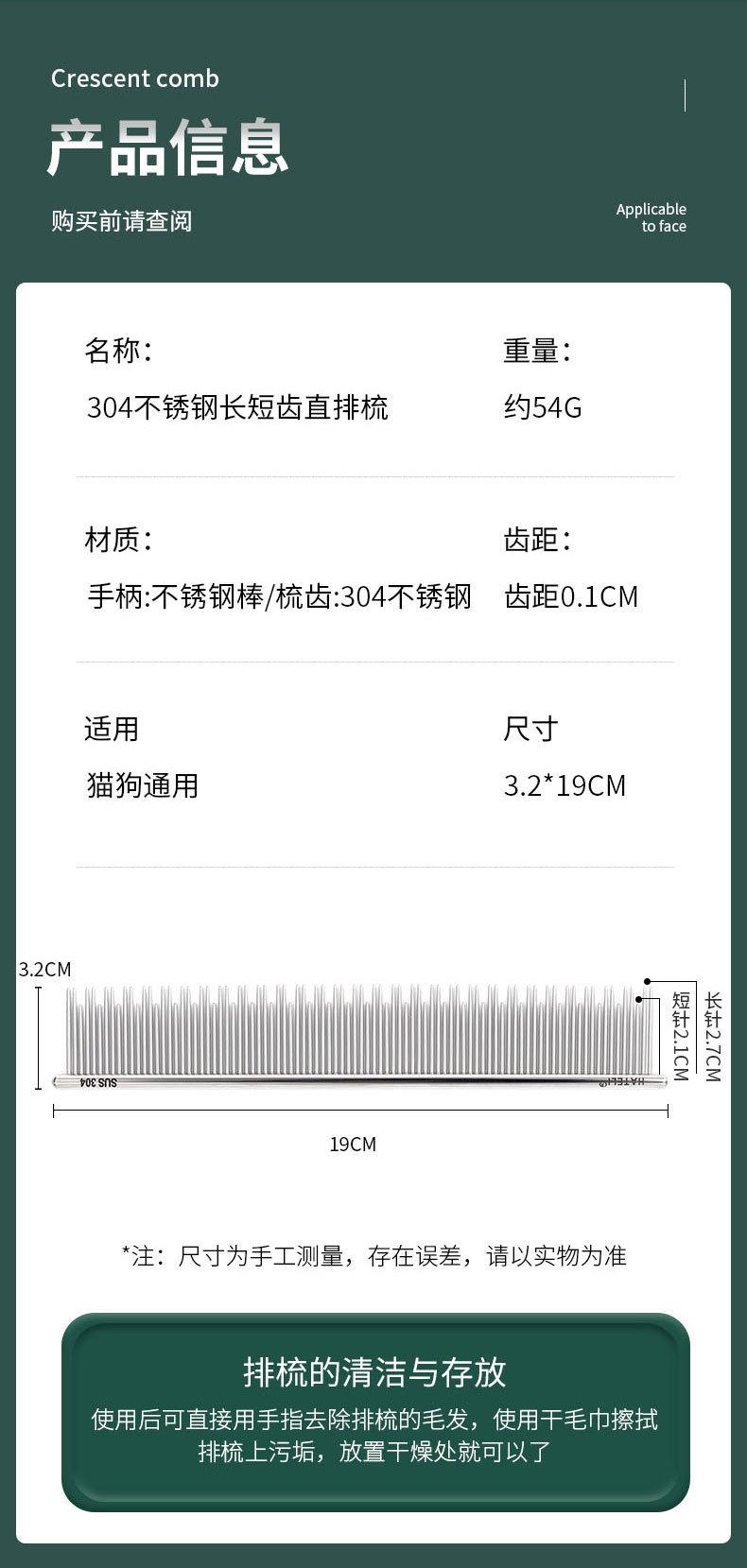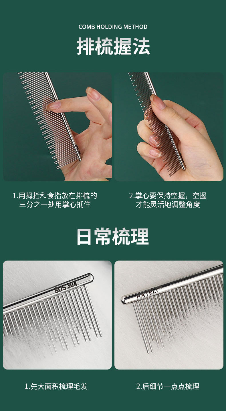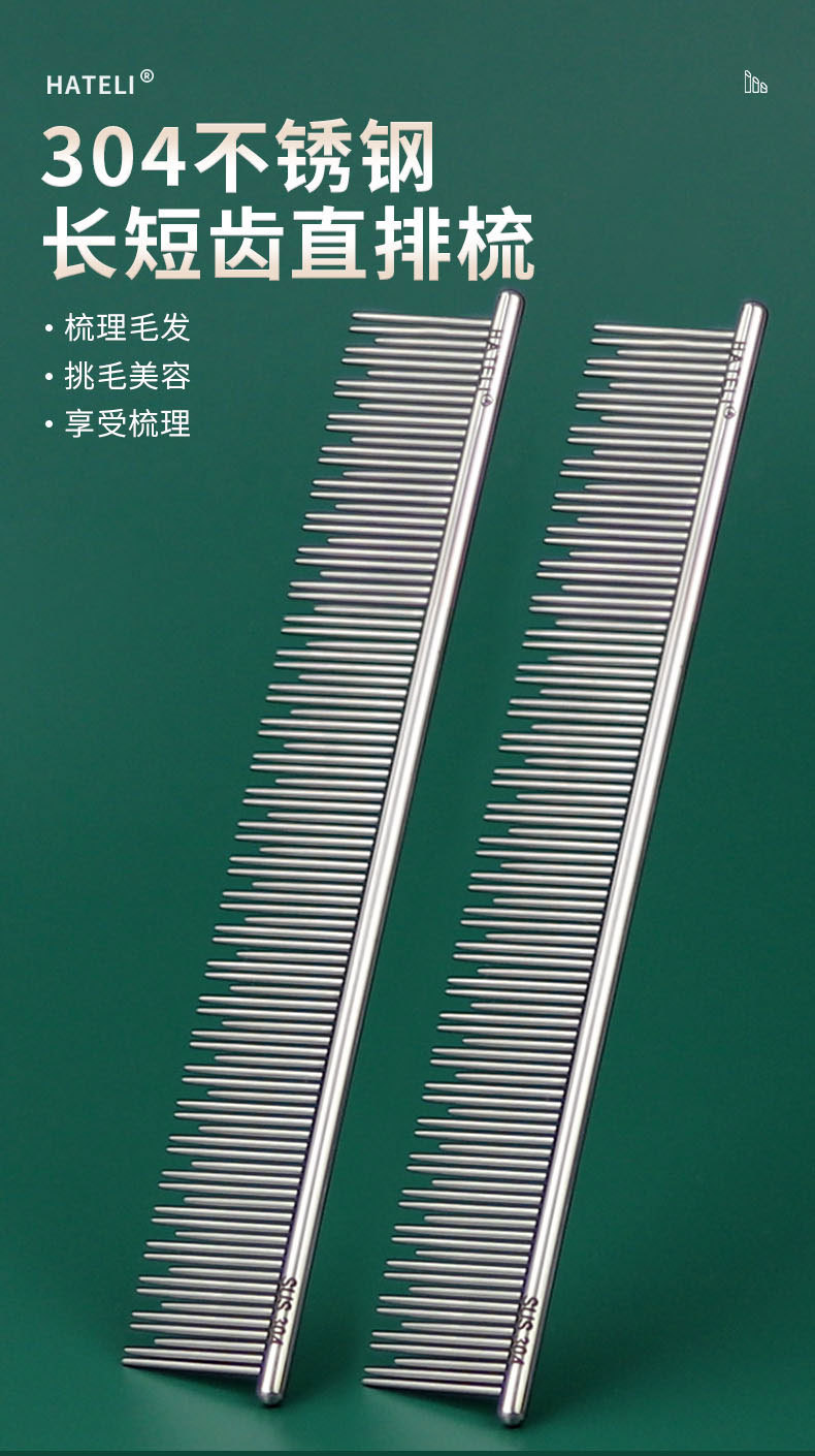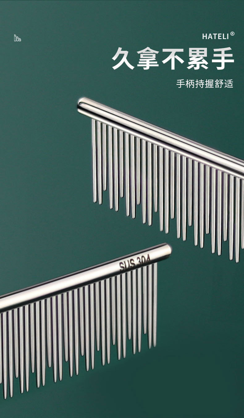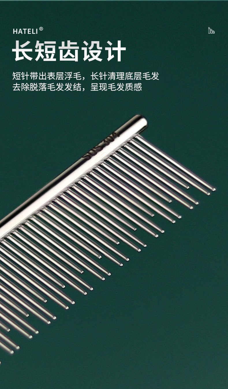 하틀리 고양이 털 제거 빗, 고양이 털 정리 빗, 랙캣 빗, 긴/짧은 바늘 이중 치아 빗