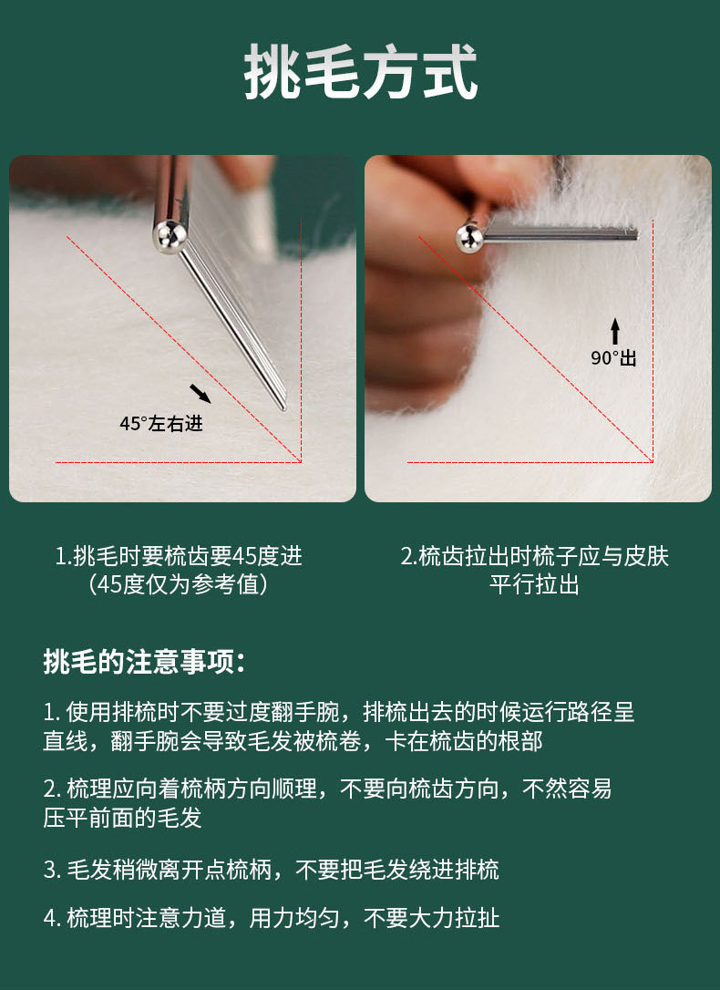 • 털 따기 곡선 바늘 직선 빗 22cm