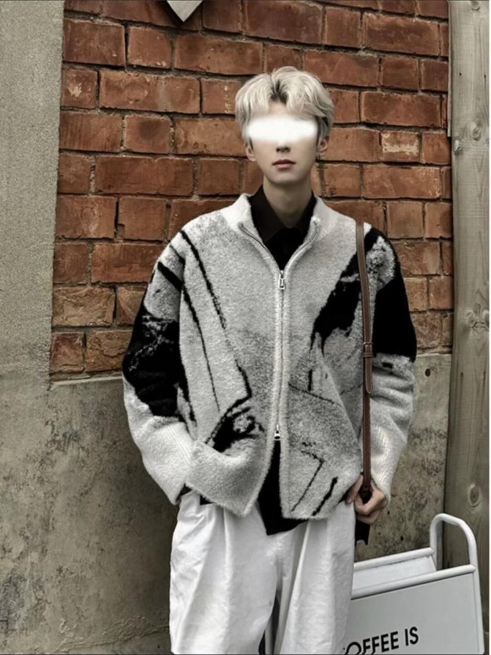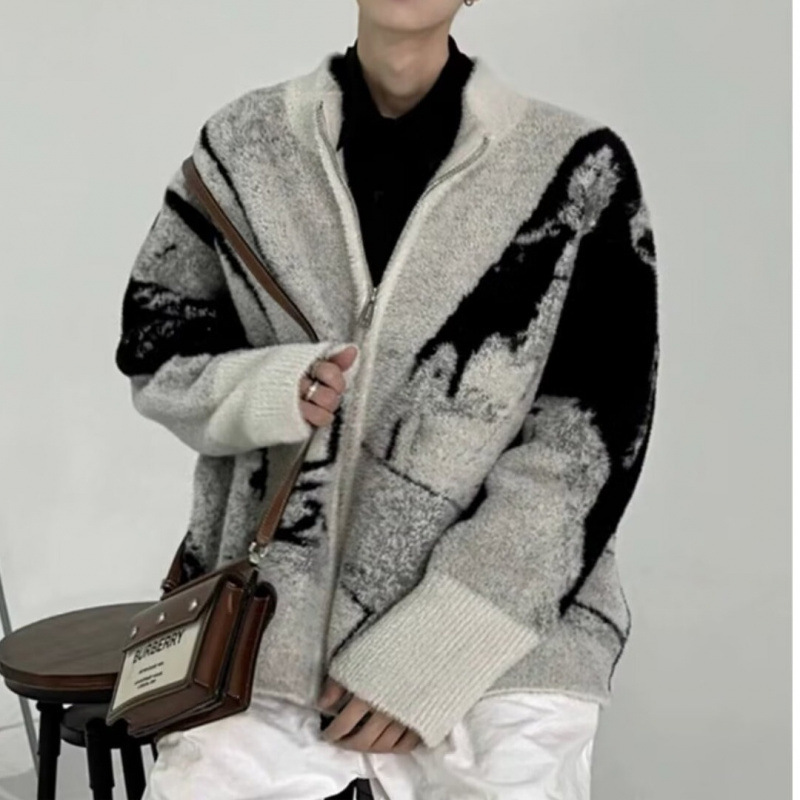 미국 복고풍 패션 브랜드 고급 틈새 디자인 센스 긴 소매 카디건 스웨터 남성 가을과 겨울 새로운 패션 스웨터 패션스토어 가기