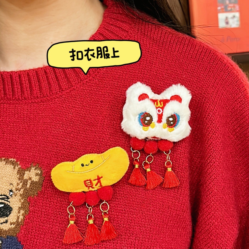 귀여운 봉제 각성 사자 Yuanbao 브로치 펜던트 축제 새해 인형 핀 소녀 배낭 장식 펜던트 쥬얼리