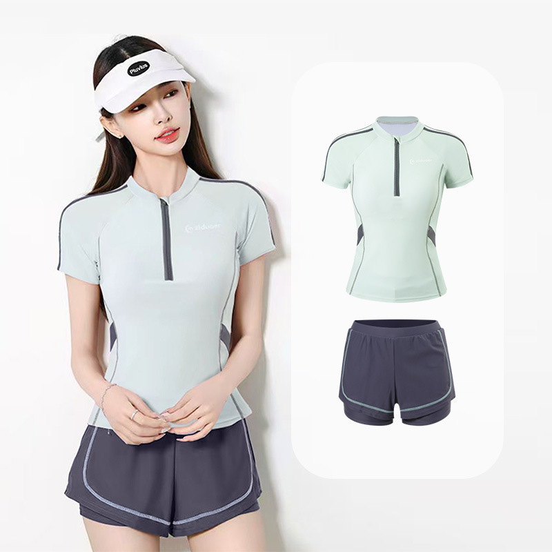 새로운 스플릿 스포츠 소녀 보수적 인 작은 신선한 한국 투피스 해변 온천 휴가 수영복 여성 도매스토어 가기