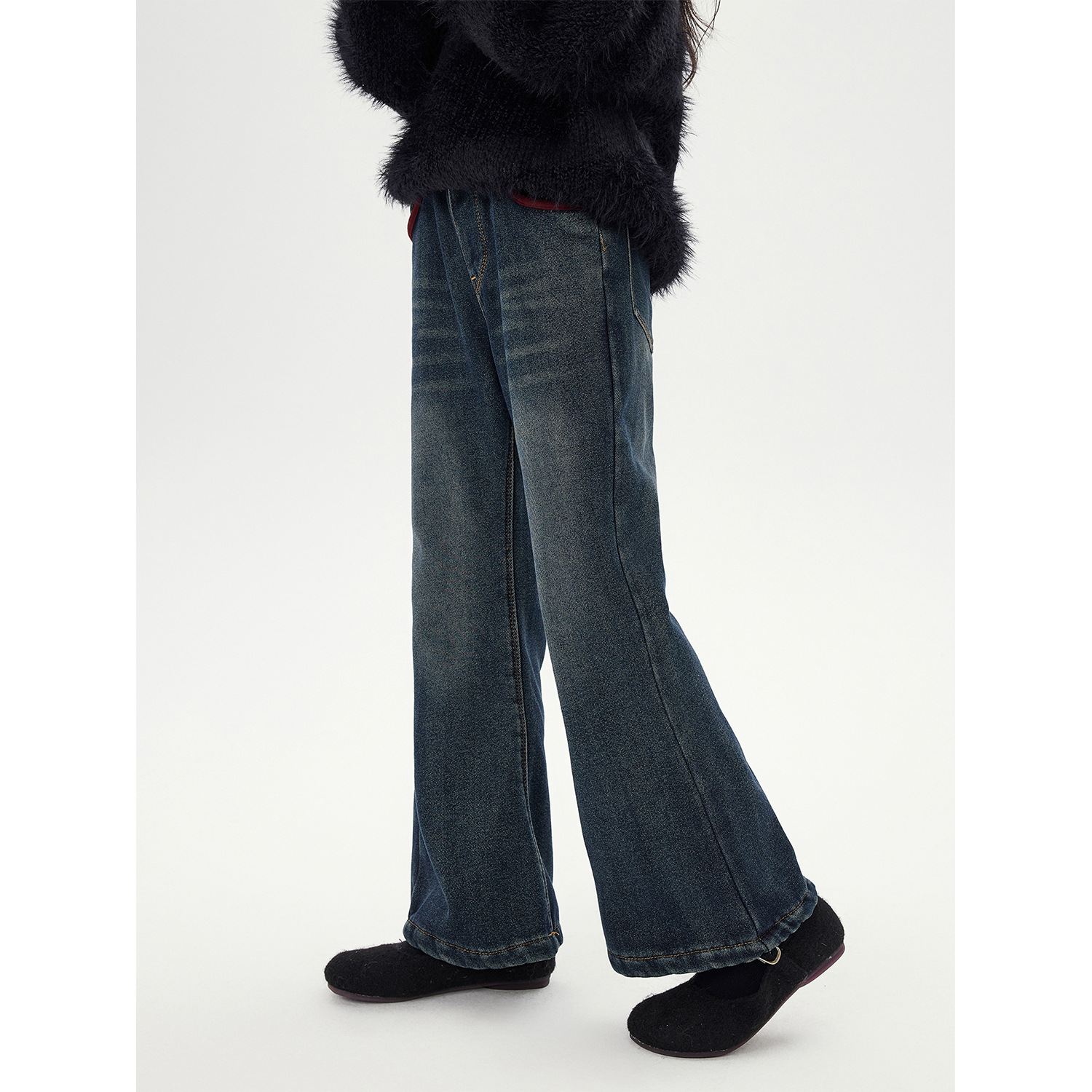 여자 기모 데님 플래 팬츠 2024 새로운 어린이 두꺼운 따뜻한 바지 캐주얼 올매치 와이드 레그 바지스토어 가기