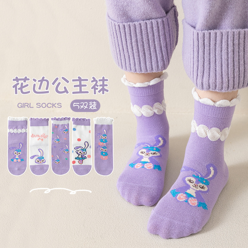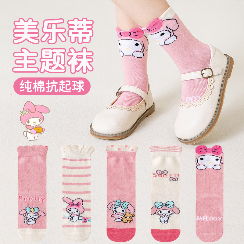 Kulomi Girls 양말 봄과 가을 어린이 면화 만화 중간 튜브 양말 여학생 중학교 어린이 아기 가을 및 겨울 면화 양말
