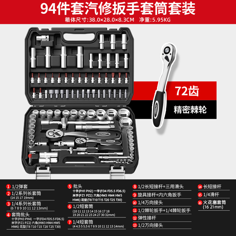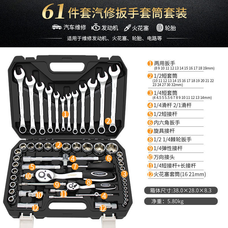 Rhett 자동 수리 도구 세트 수리 래칫 소켓 렌치 Daquan 자동 수리 소매 다기능 조합 상자