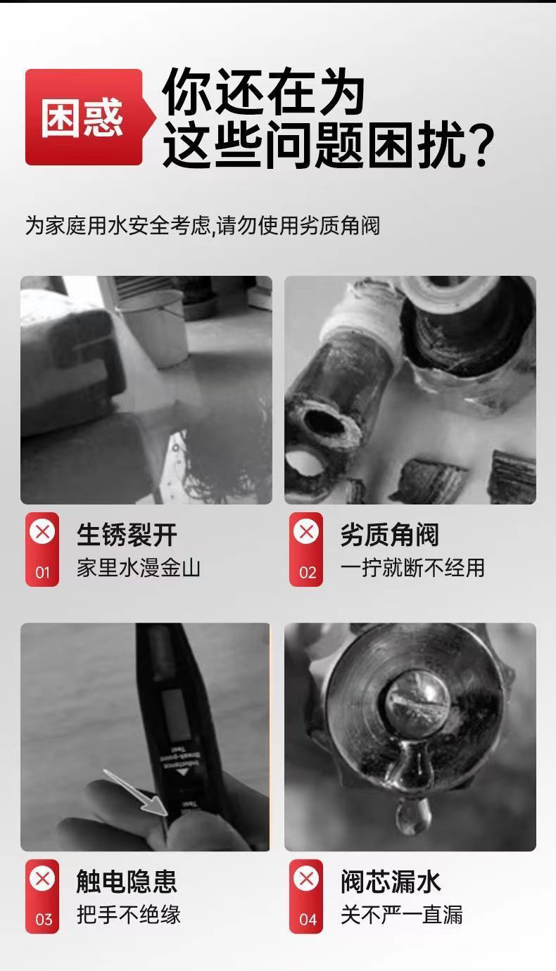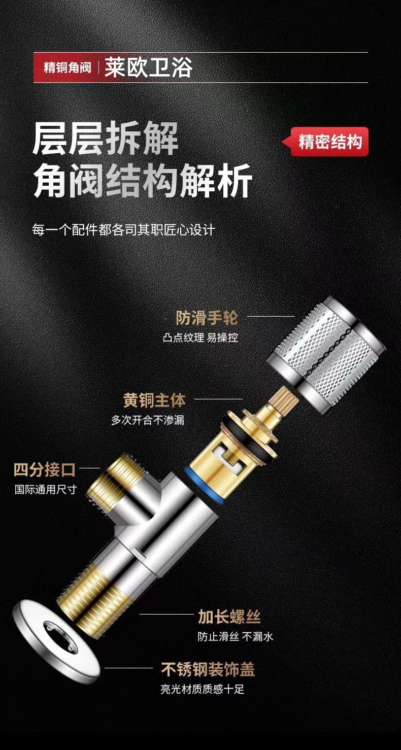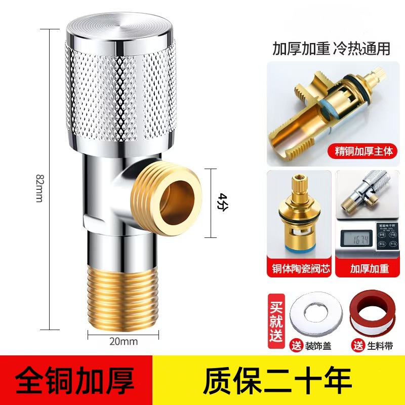 공장 도매 삼각 밸브, 순동 두꺼운 앵글 밸브, 냉온수기 및 변기용 범용 급수 밸브, 4포인트 스위치 앵글 밸브스토어 가기