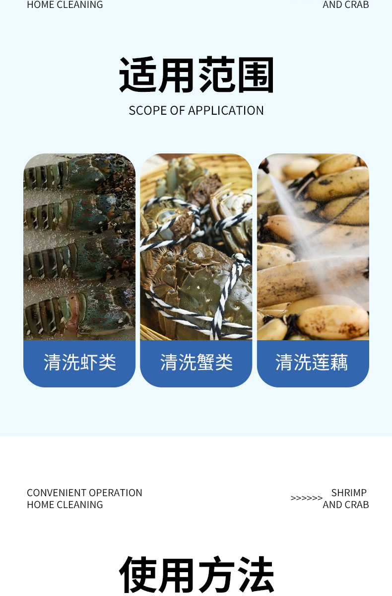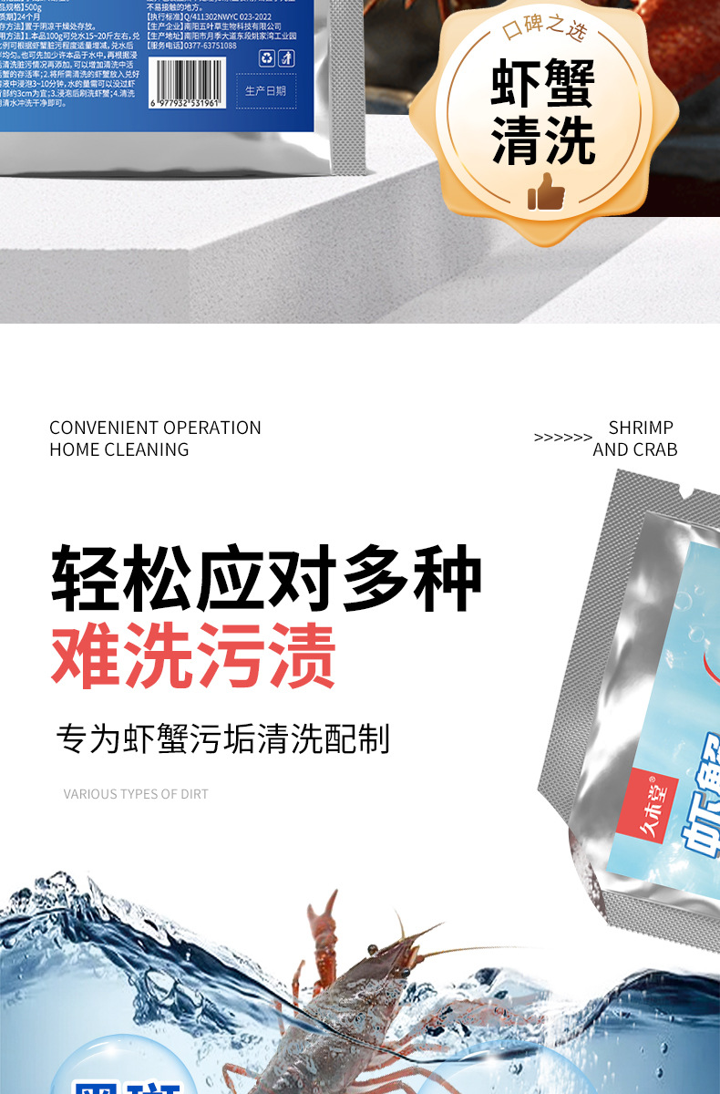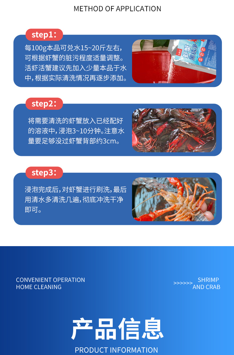注:使用洗虾粉时,请用温水稀释开效果会更好!!!