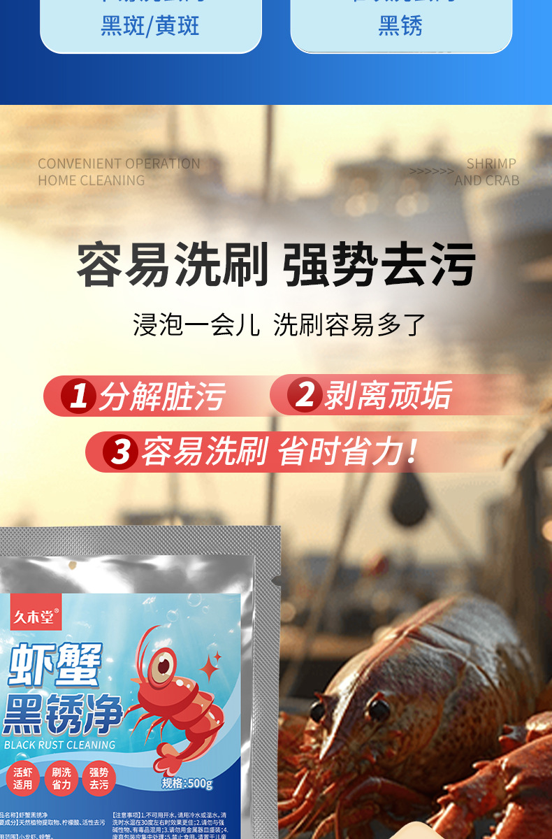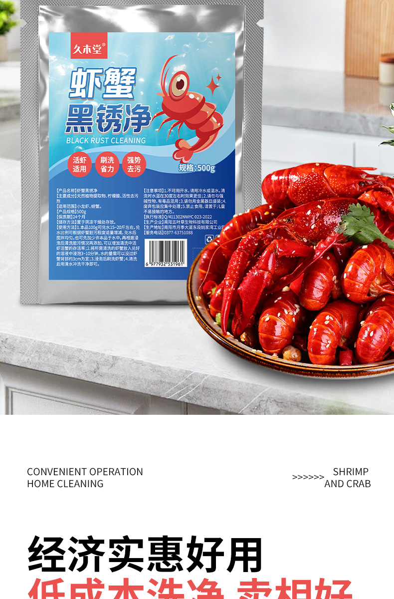 Jiumutang 새우 분말 생물학적 탈리 효소 왕새우 게 청소 에이전트 연꽃 뿌리 새우 게 검은 녹 깨끗한 세제 분말