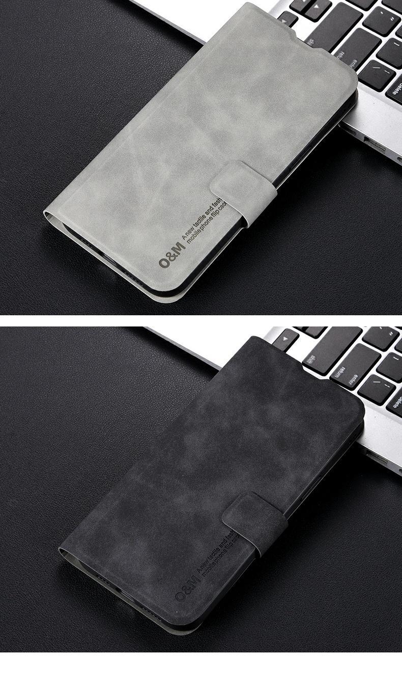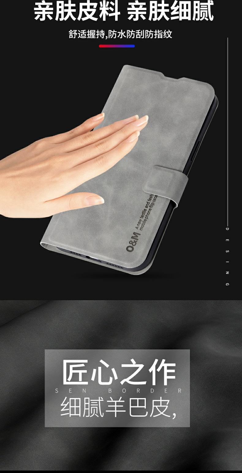 • 프리미엄 그레이 양가죽 플립 가죽 케이스