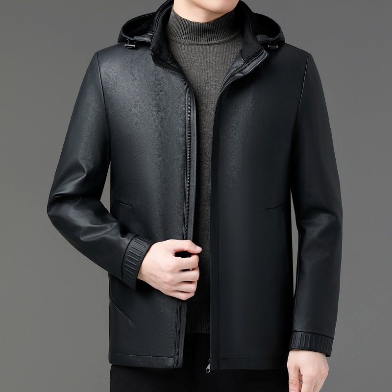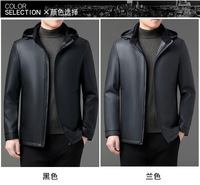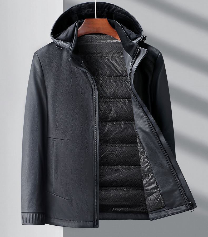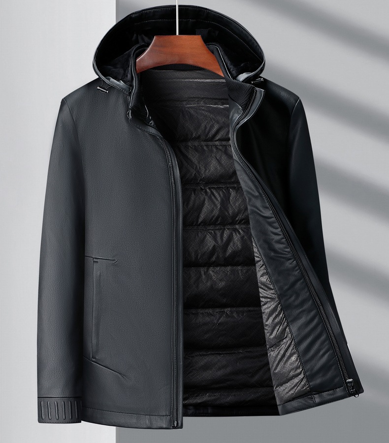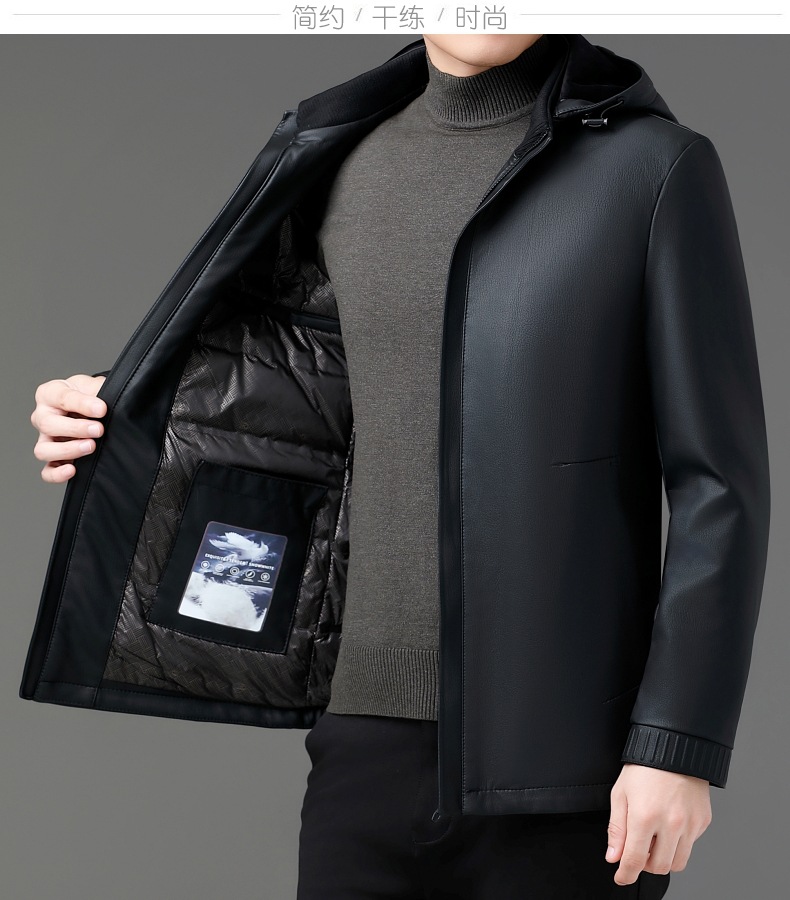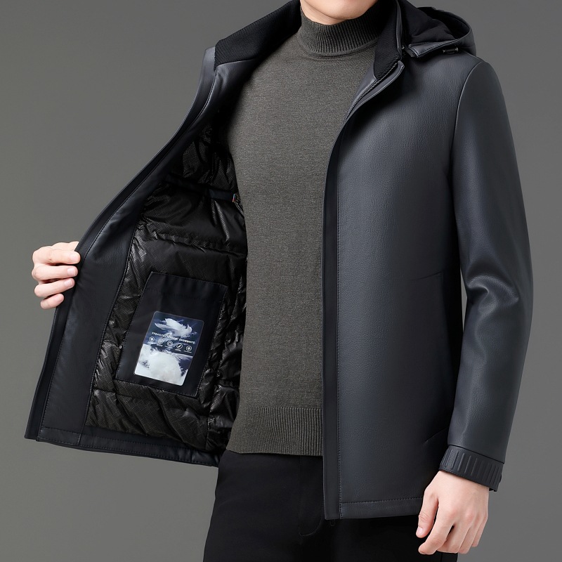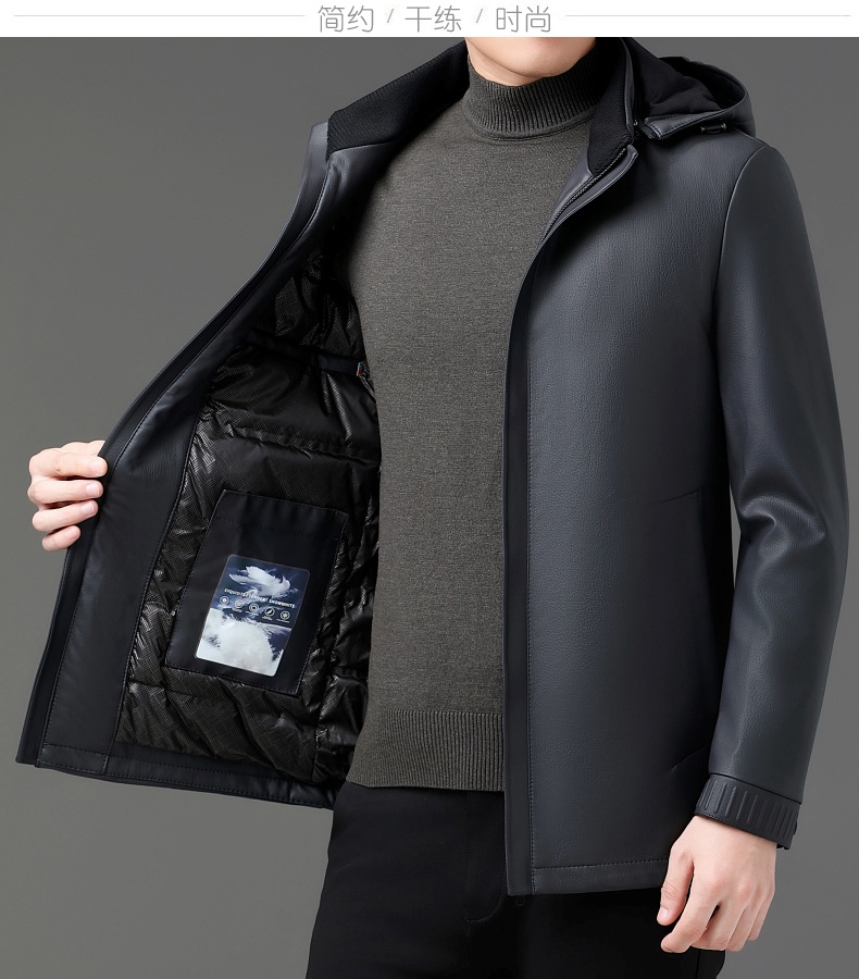 도매 하이 엔드 다운 재킷 라이너 가죽 남성 중년 및 노인 후드 겨울 두꺼운 오리 다운 비즈니스 아빠 코트