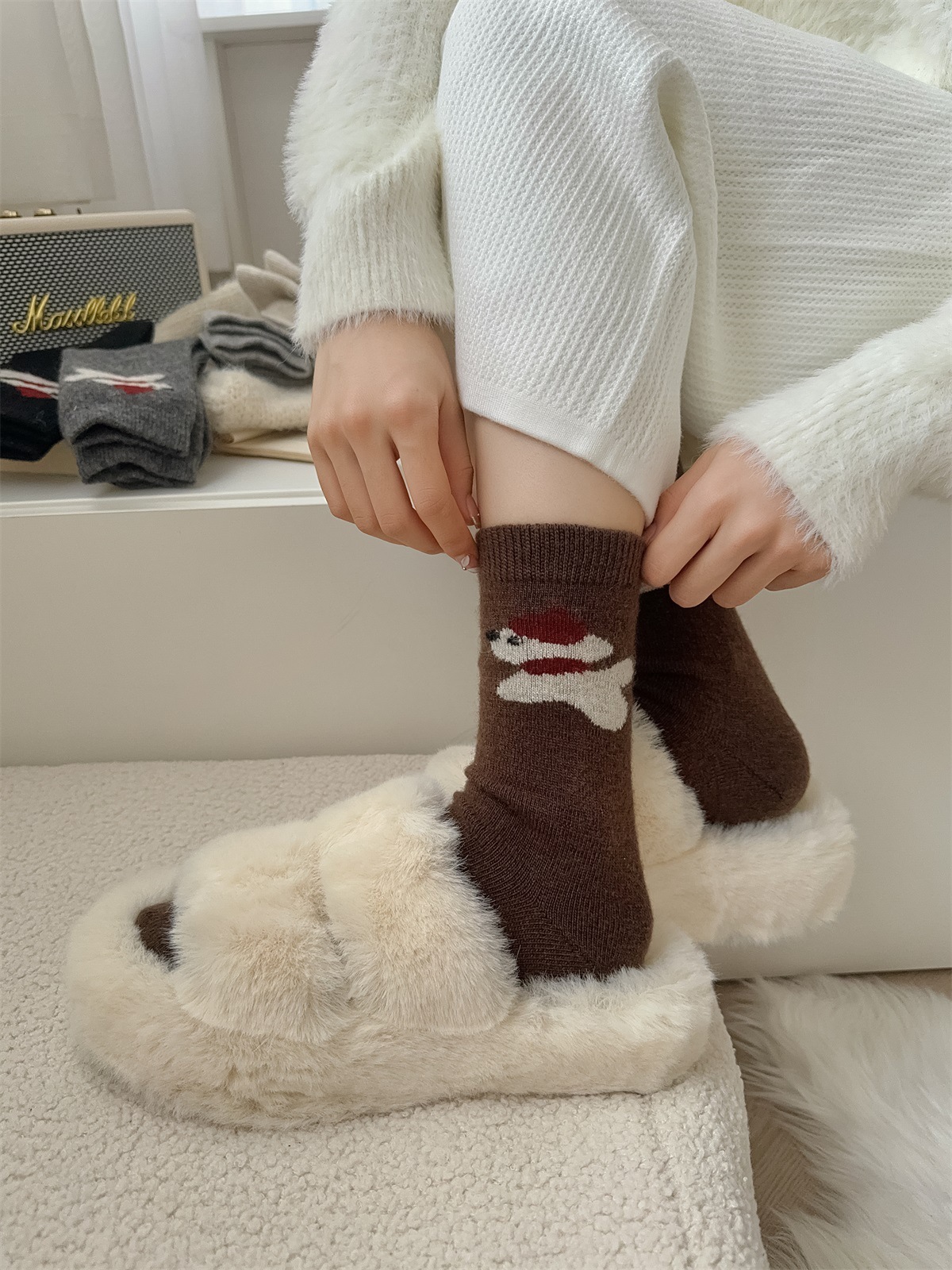 가을과 겨울 두꺼운 따뜻한 양모 양말 여성용 트렌디 한 만화 스카프 귀여운 미드 양말 올매치 더미 양말스토어 가기