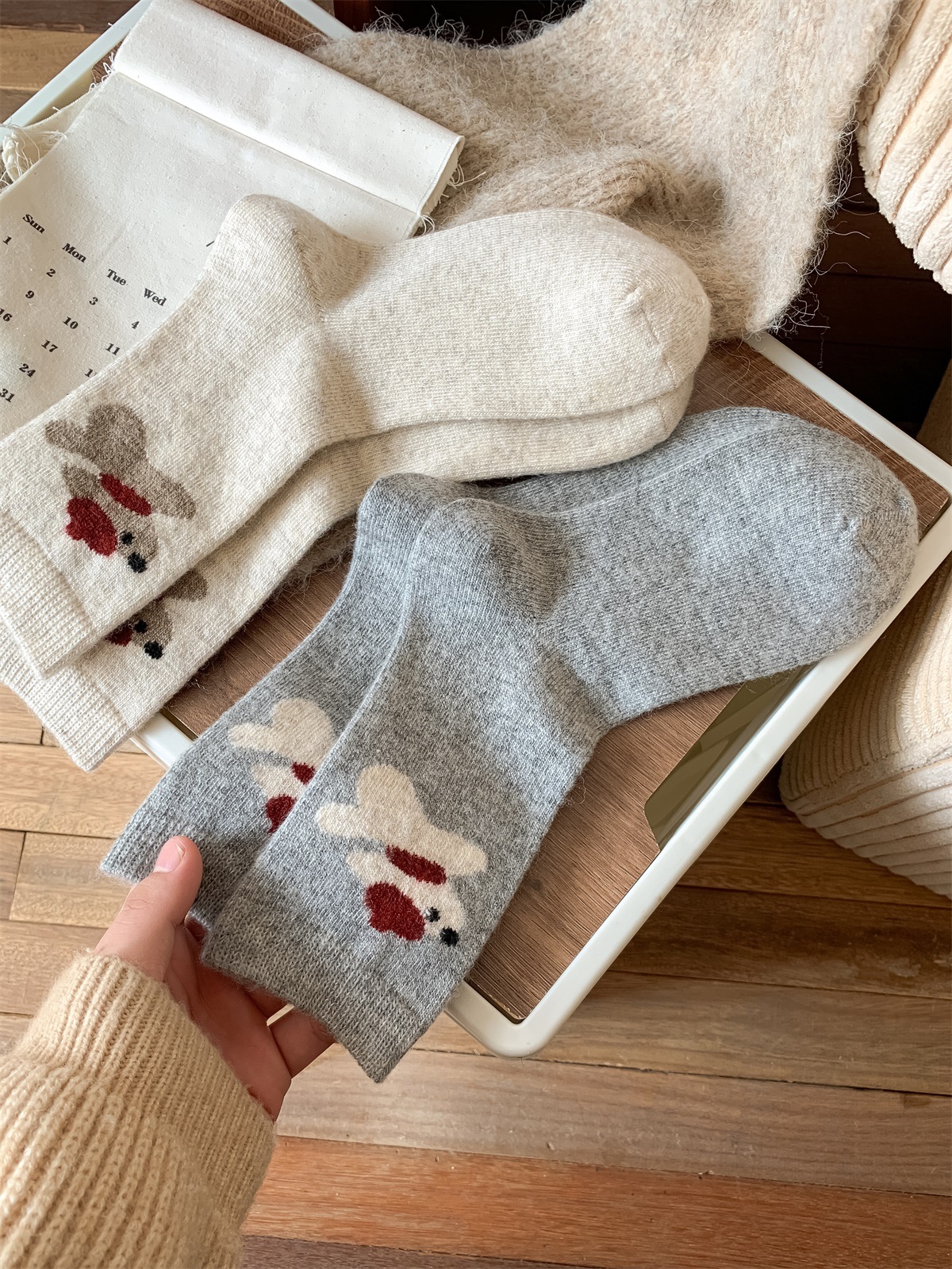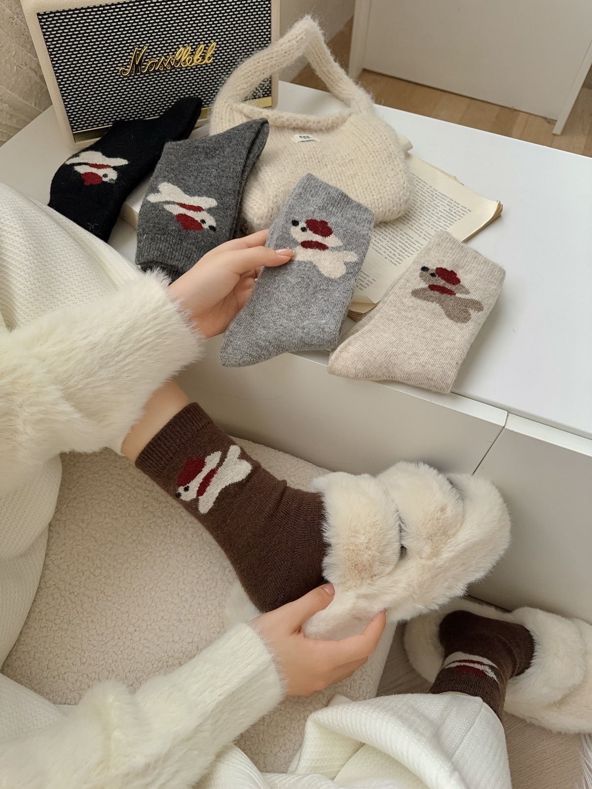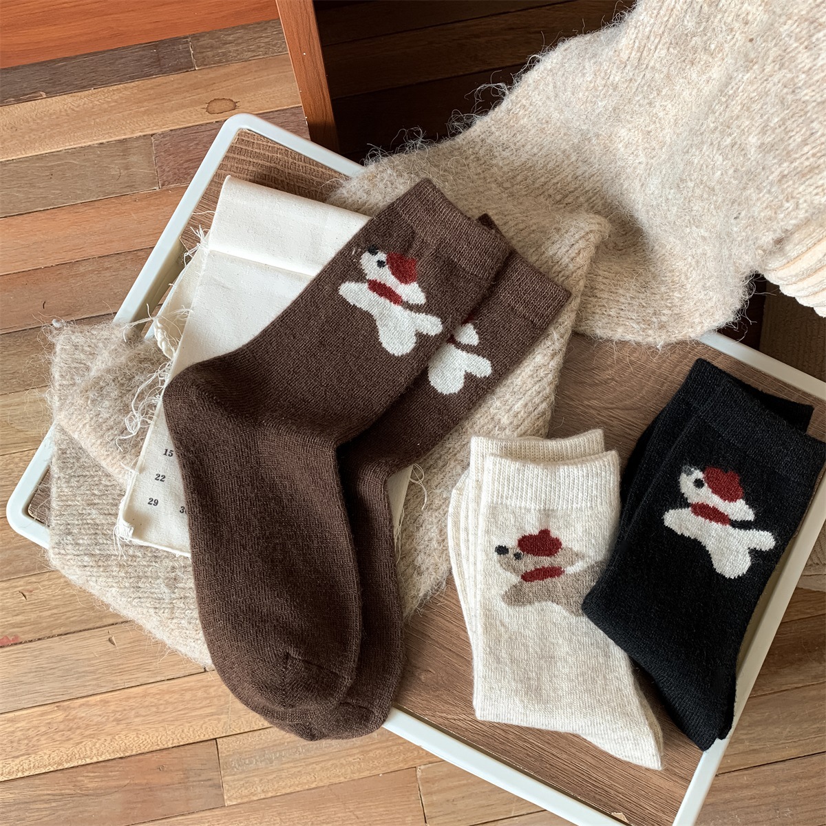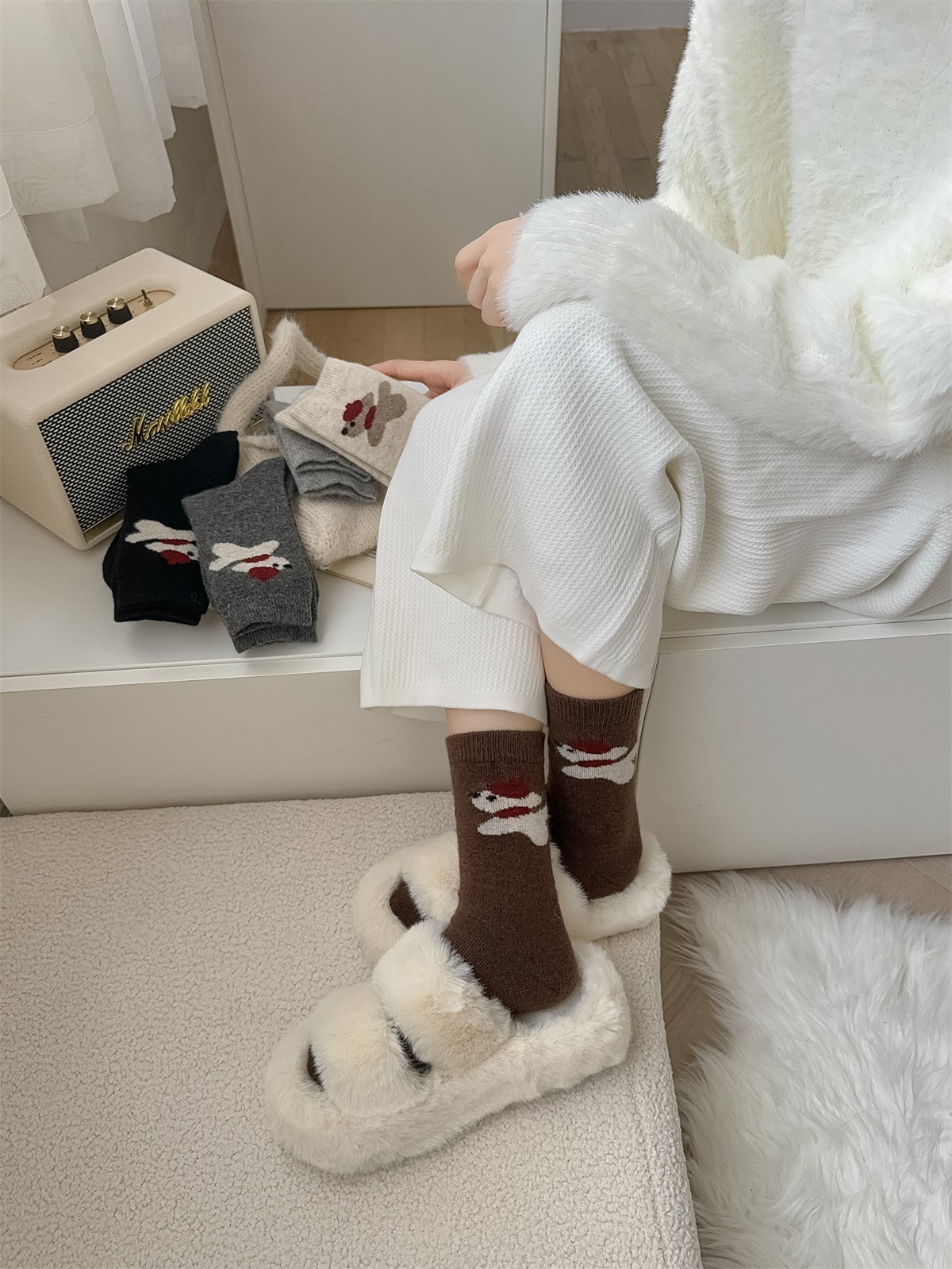 가을과 겨울 두꺼운 따뜻한 양모 양말 여성용 트렌디 한 만화 스카프 귀여운 미드 양말 올매치 더미 양말