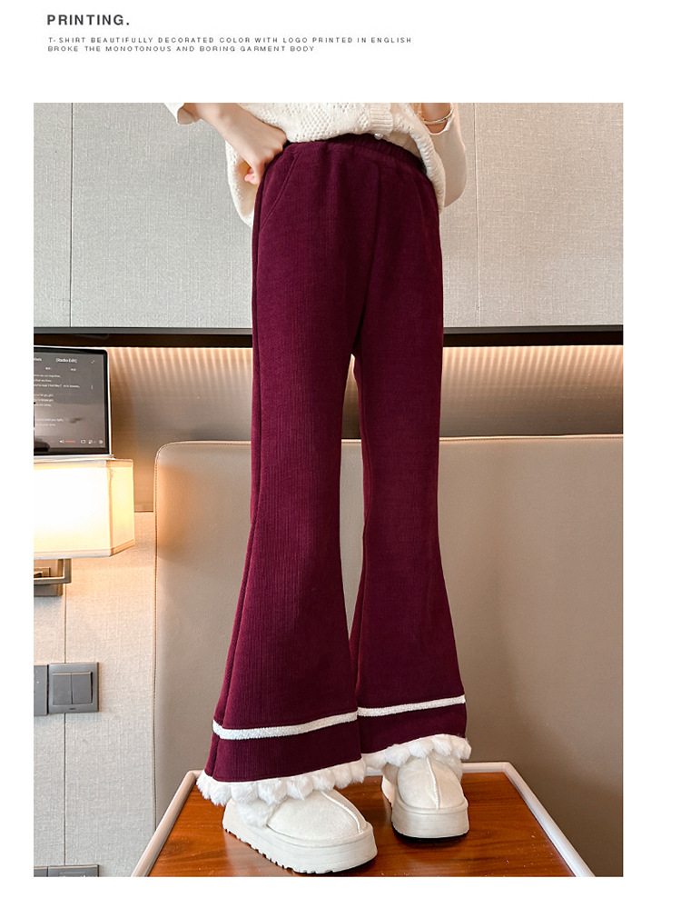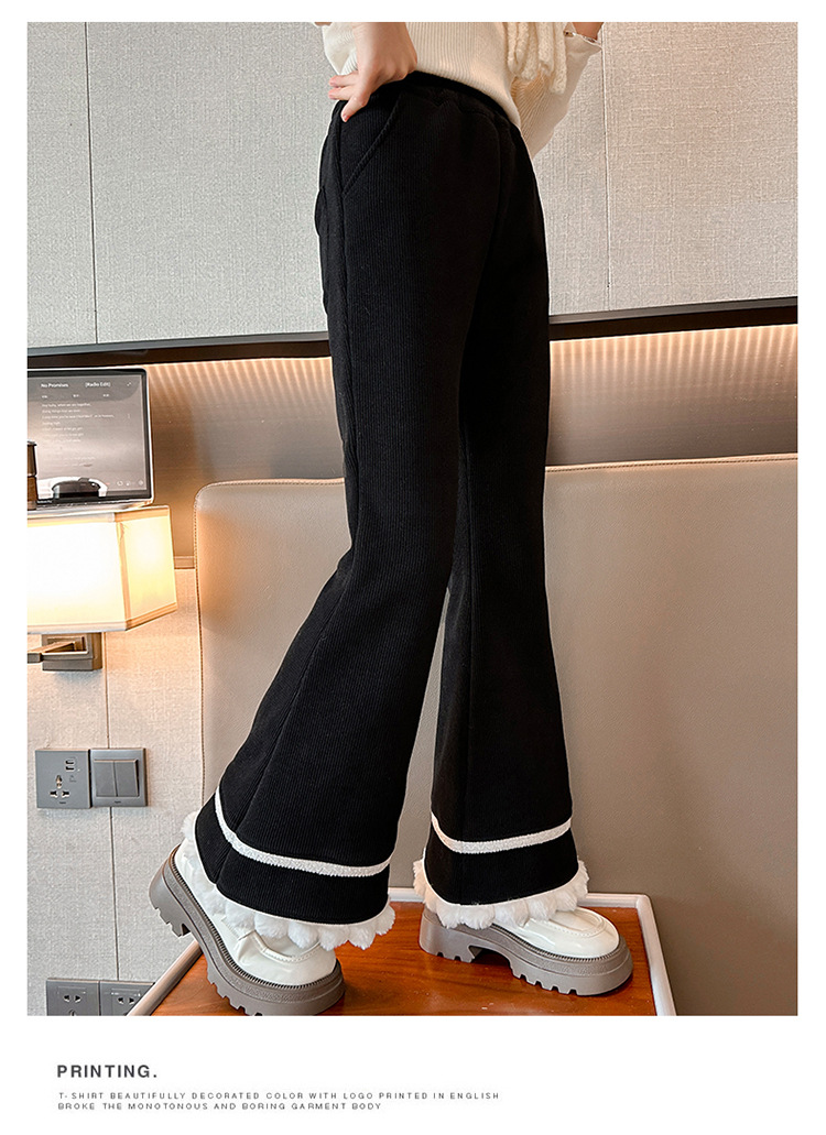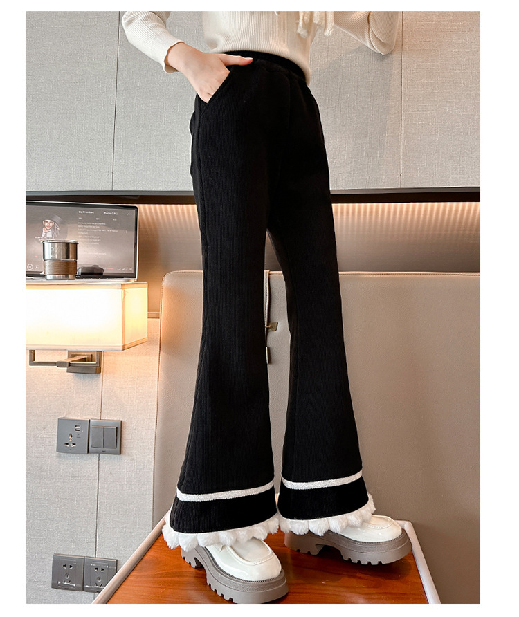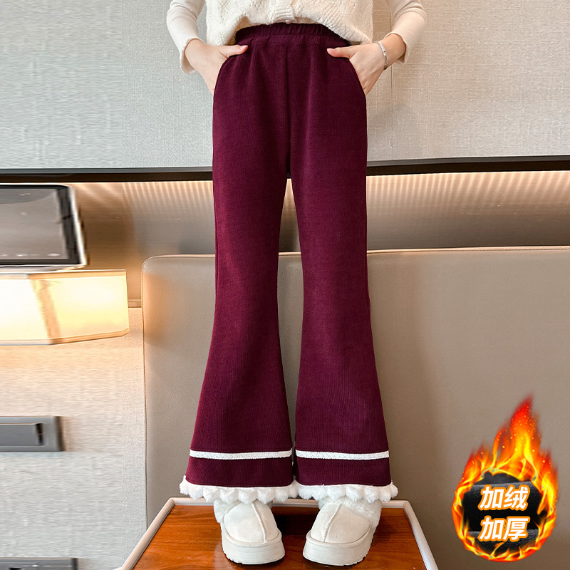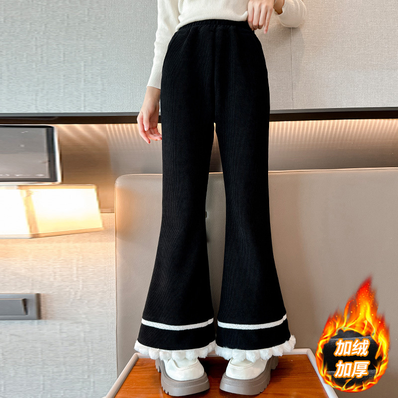 소녀 기모 바지 어린이 두꺼운 플레어 바지 겨울 2024 새로운 소녀 기모 캐주얼 바지스토어 가기