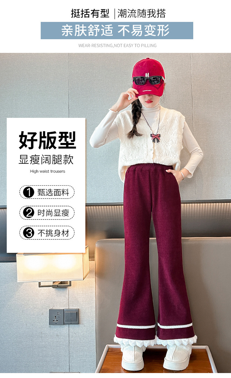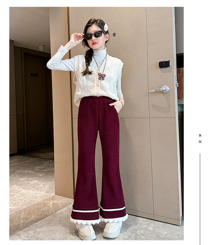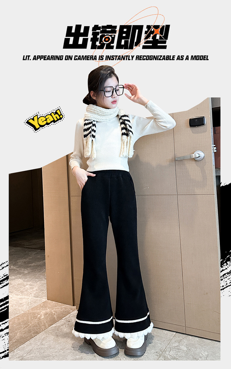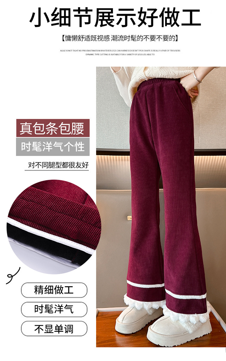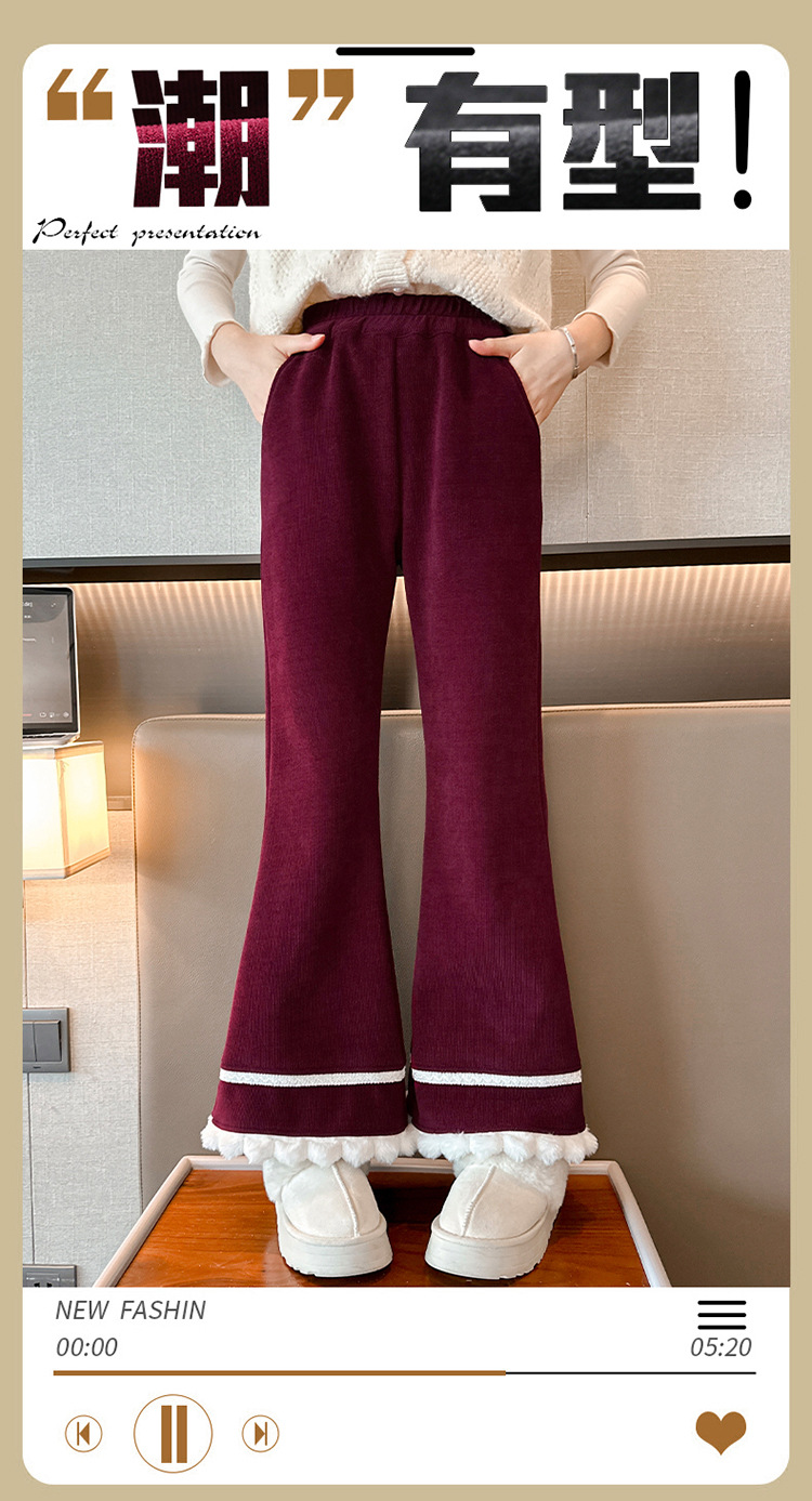 소녀 기모 바지 어린이 두꺼운 플레어 바지 겨울 2024 새로운 소녀 기모 캐주얼 바지스토어 가기