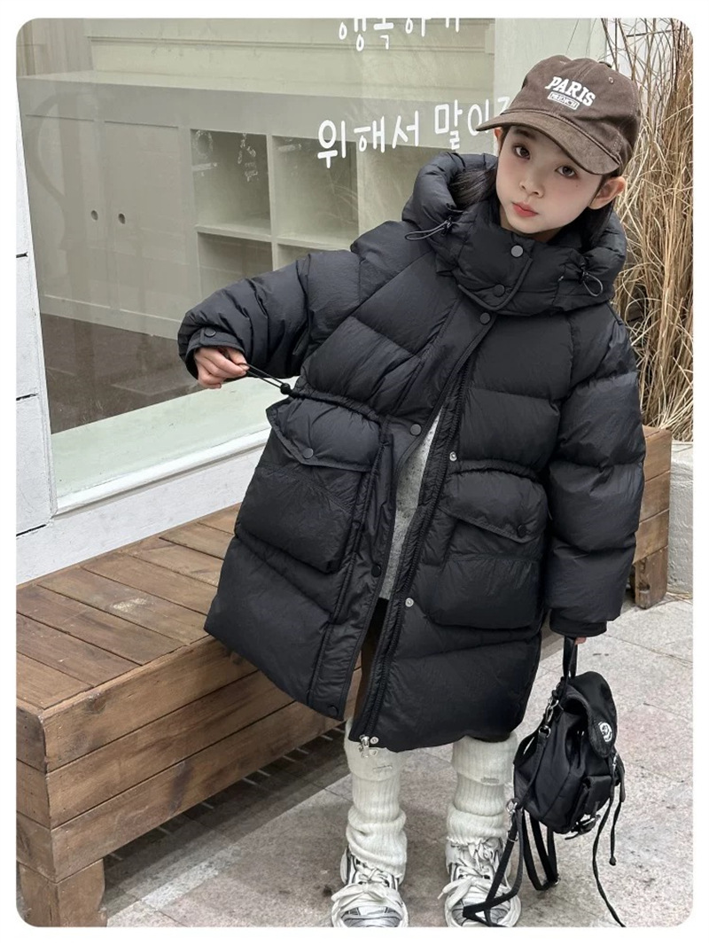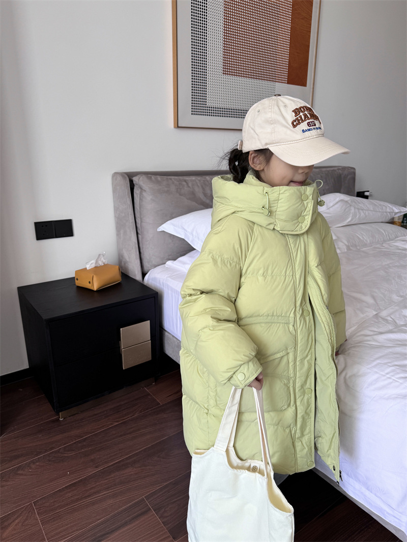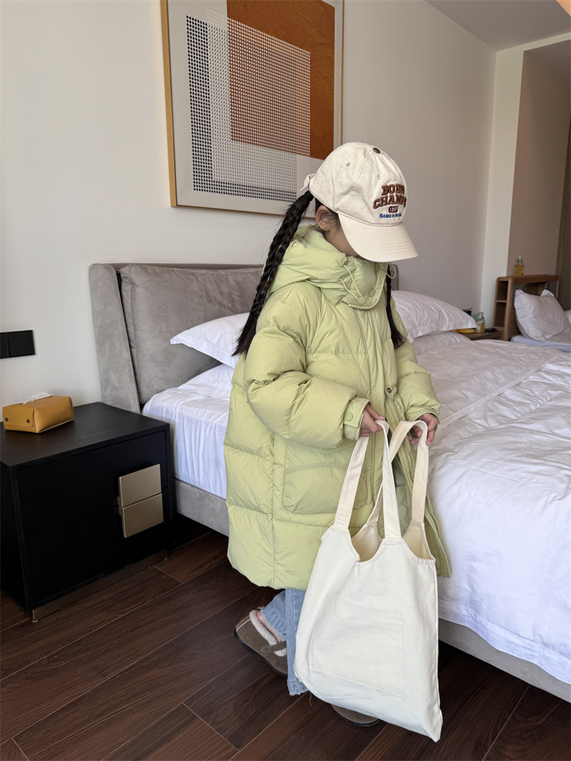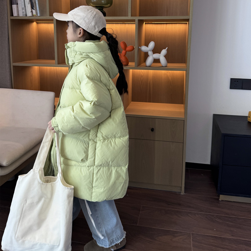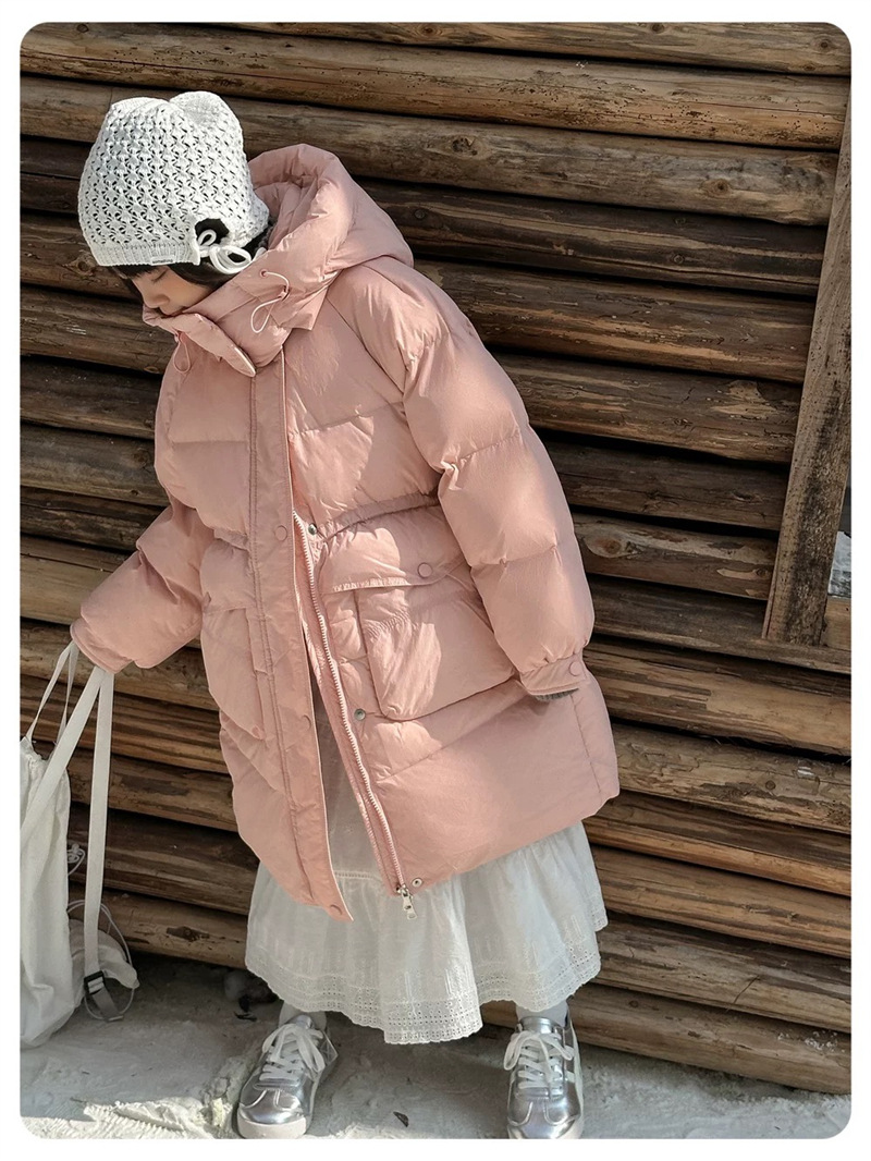 2025 오프시즌 특가 한국판 중간 길이 무릎 위 여아 다운 재킷 두꺼운 서양식 여아 중대형 아동 재킷 트렌디