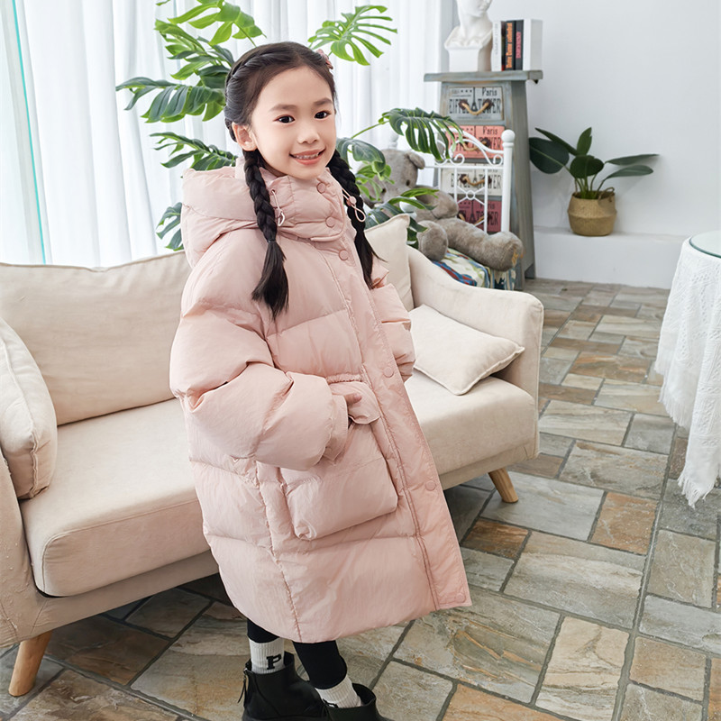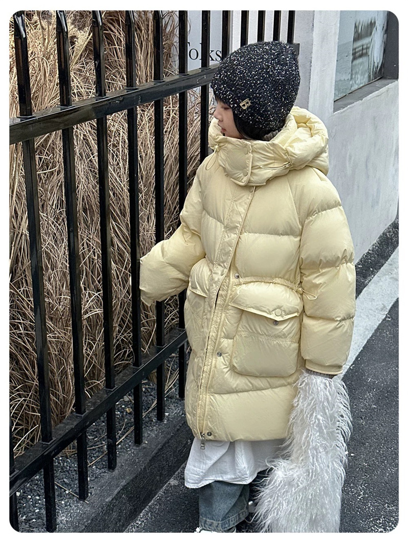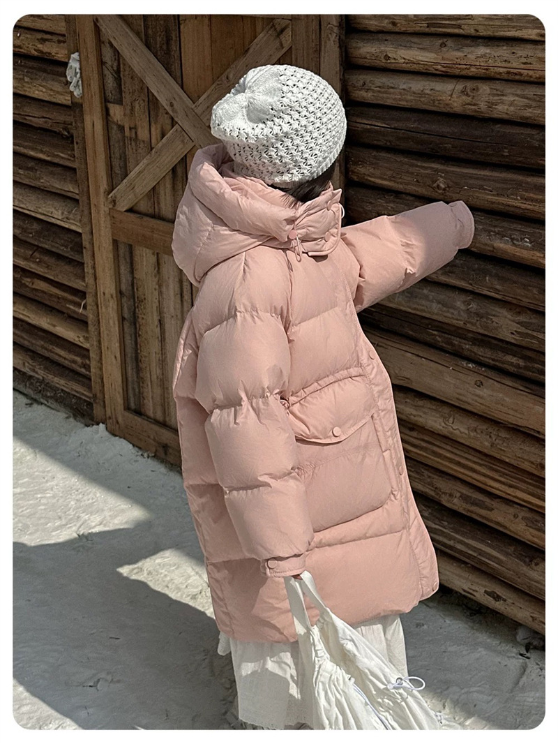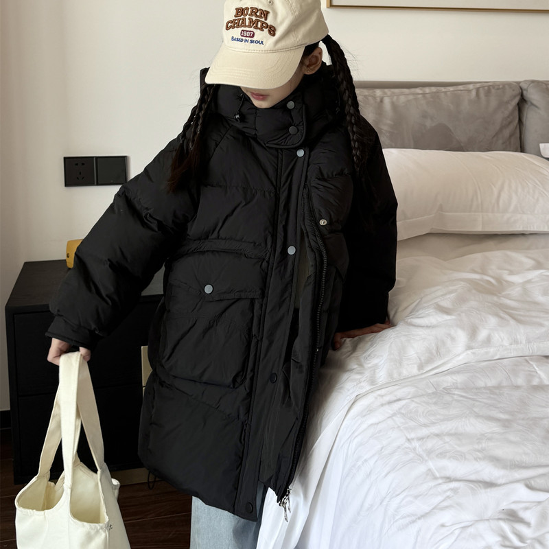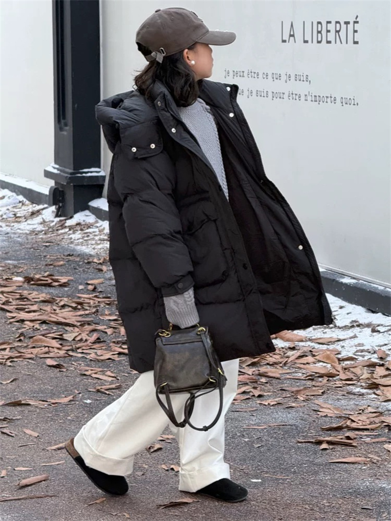 2025 오프시즌 특가 한국판 중간 길이 무릎 위 여아 다운 재킷 두꺼운 서양식 여아 중대형 아동 재킷 트렌디