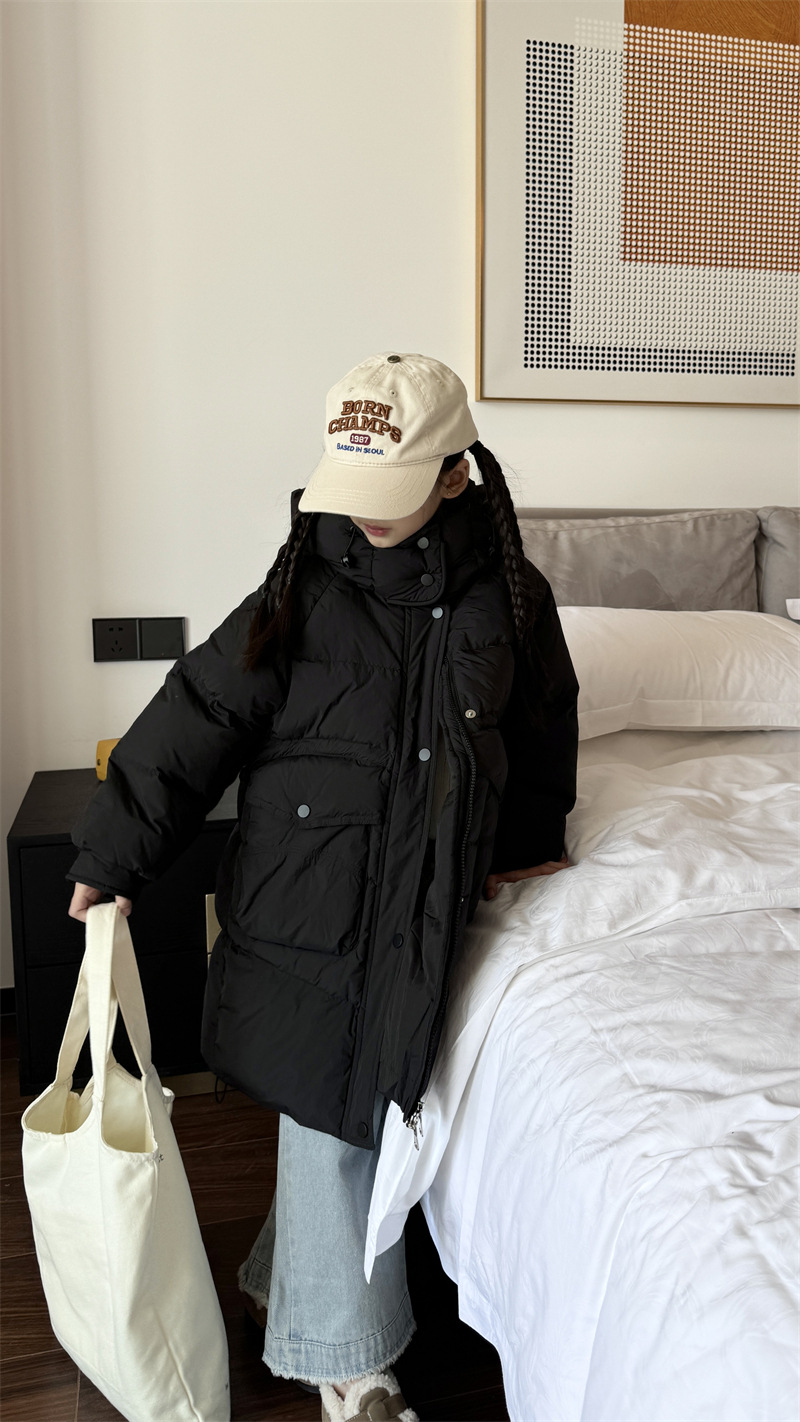 2025 오프시즌 특가 한국판 중간 길이 무릎 위 여아 다운 재킷 두꺼운 서양식 여아 중대형 아동 재킷 트렌디스토어 가기