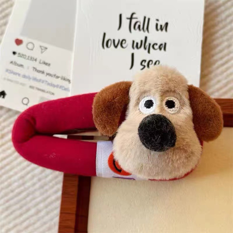 만화 캐릭터 플러시 강아지 머리핀 귀여운 빨간색 일본 및 한국 스타일 앞머리 집게핀 대형 헤어핀