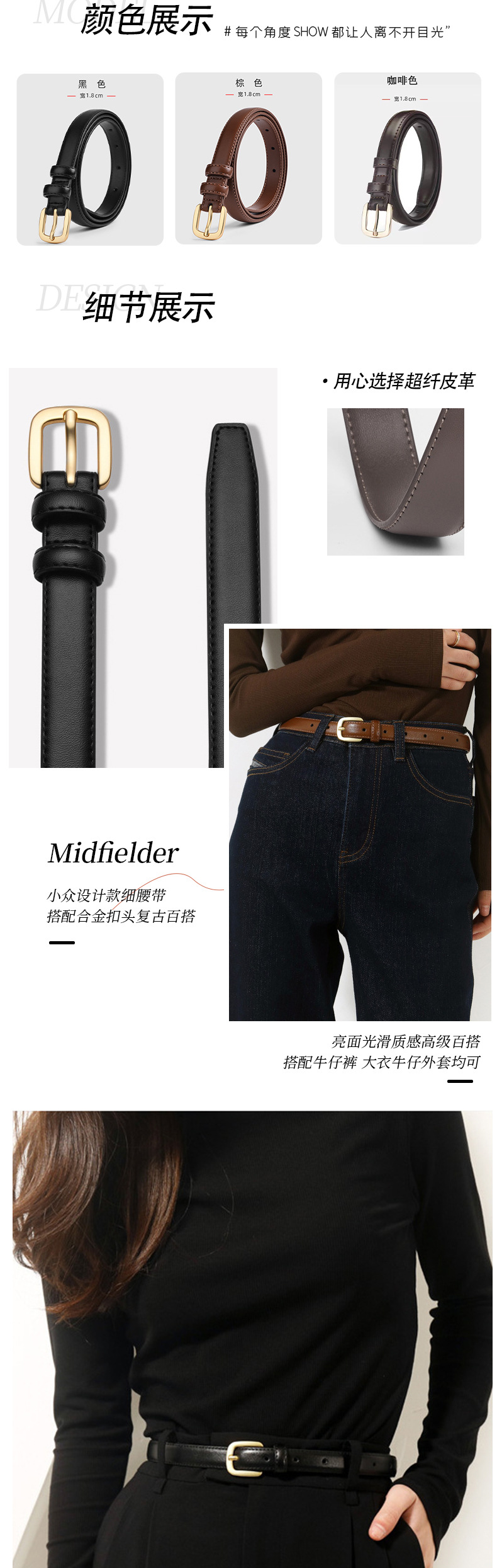Ins 간단한 복고풍 한국 스타일 바지 벨트 패션 인터넷 연예인 통근 스타일 바지 벨트 패션 다목적 멀티 컬러 얇은 벨트스토어 가기