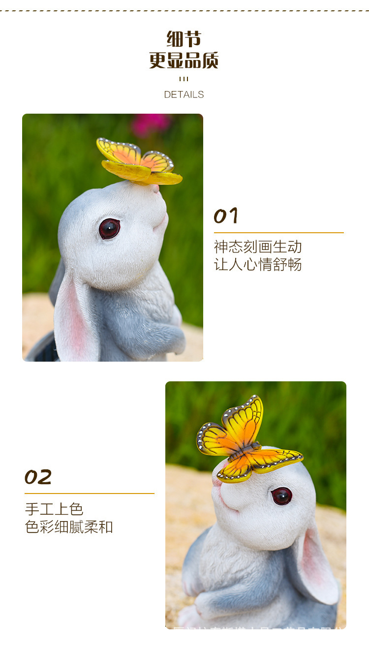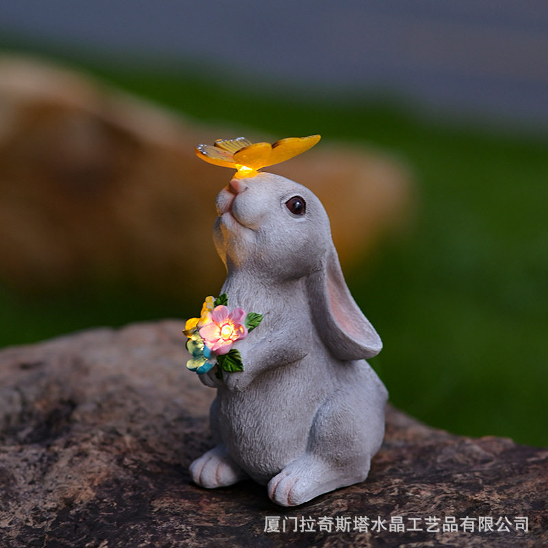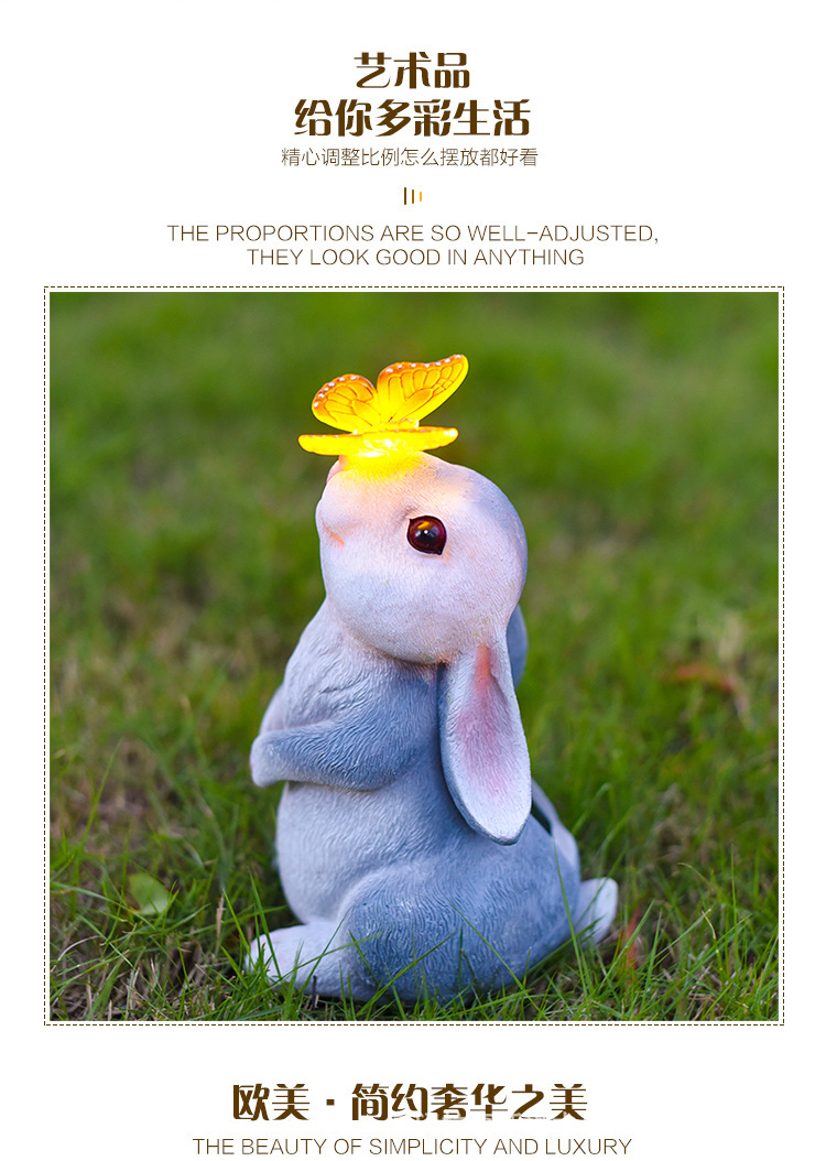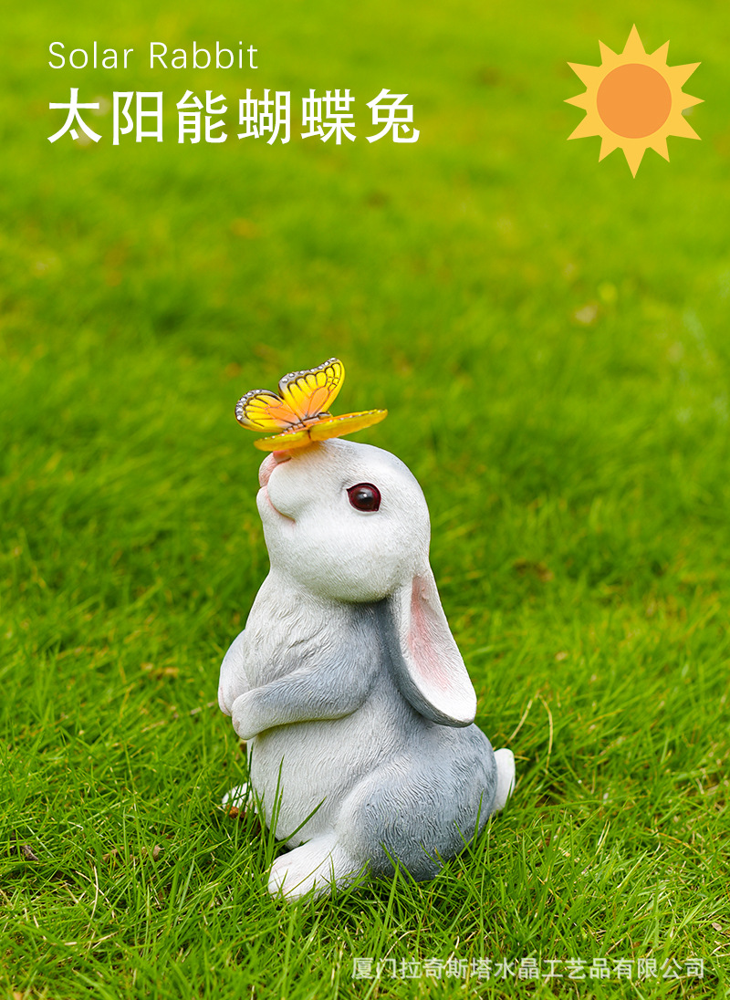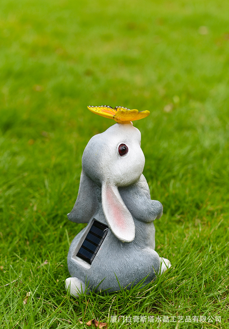 회색 토끼 나비 장식품 태양 야외 안뜰 정원 장식 잔디 야외 동상 동물 장식품스토어 가기