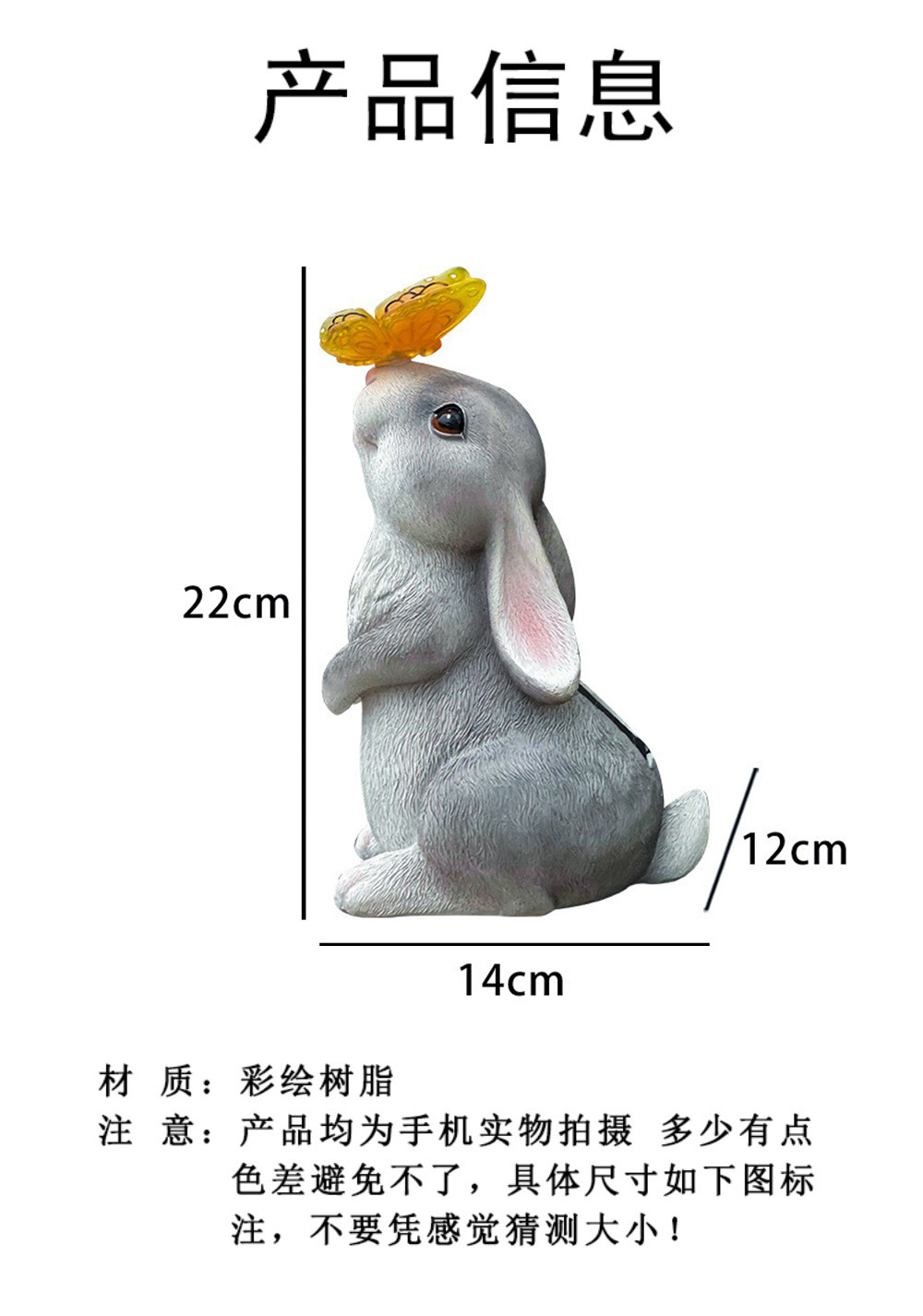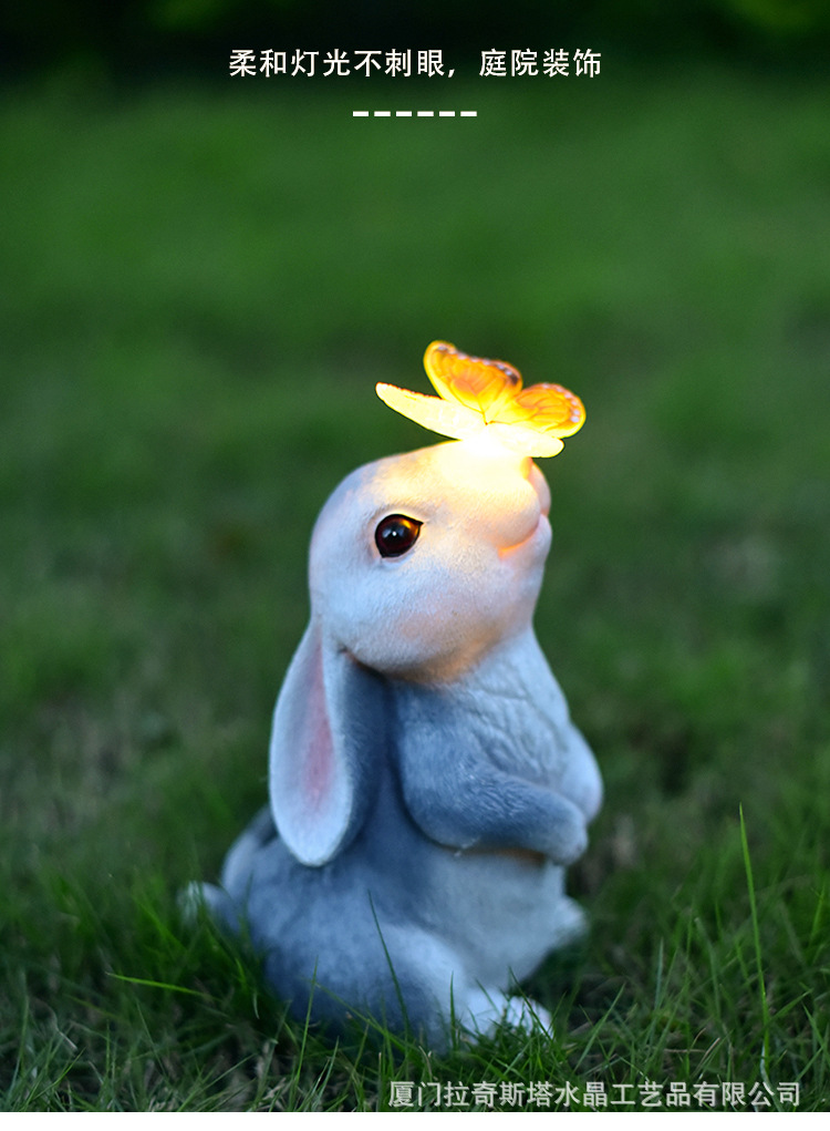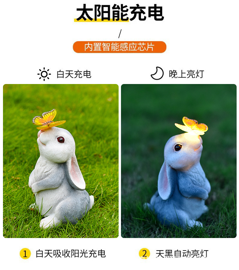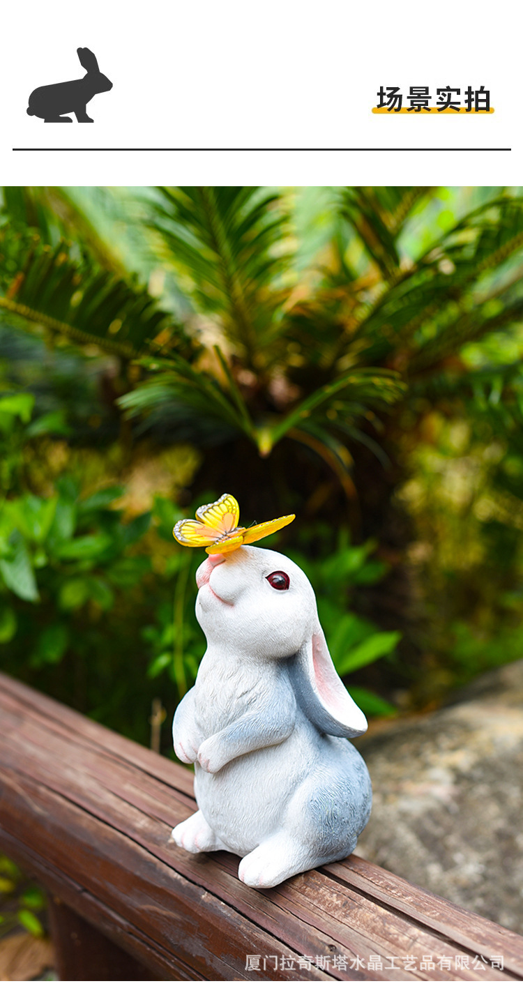 회색 토끼 나비 장식품 태양 야외 안뜰 정원 장식 잔디 야외 동상 동물 장식품스토어 가기