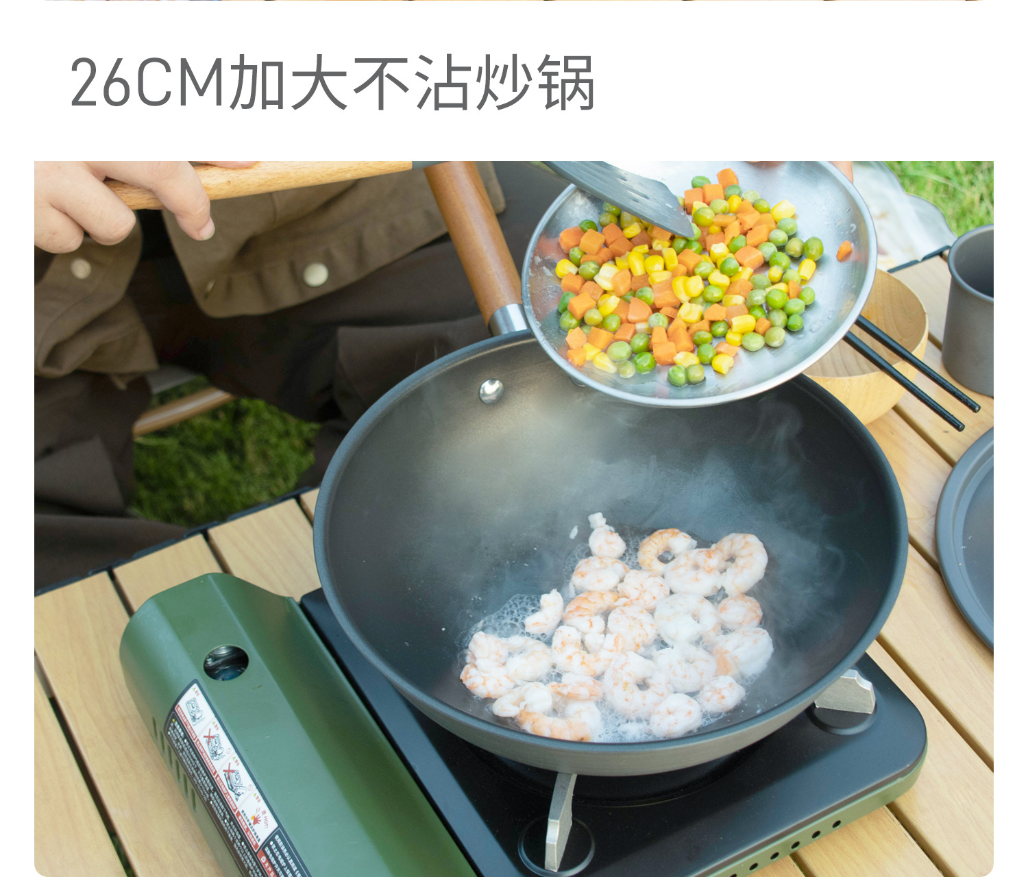 투오 쿤, 야외 캠핑 싱글 팬 핸들 휴대용 탈착식 캠핑 카세트 스토브 특수 wok에 대한 중국 스타일 wok 확대스토어 가기
