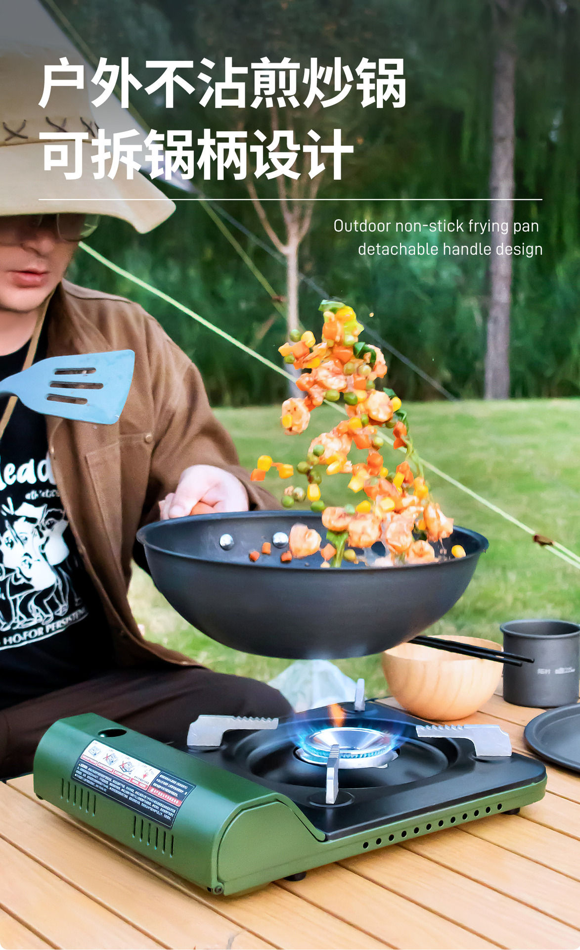 투오 쿤, 야외 캠핑 싱글 팬 핸들 휴대용 탈착식 캠핑 카세트 스토브 특수 wok에 대한 중국 스타일 wok 확대