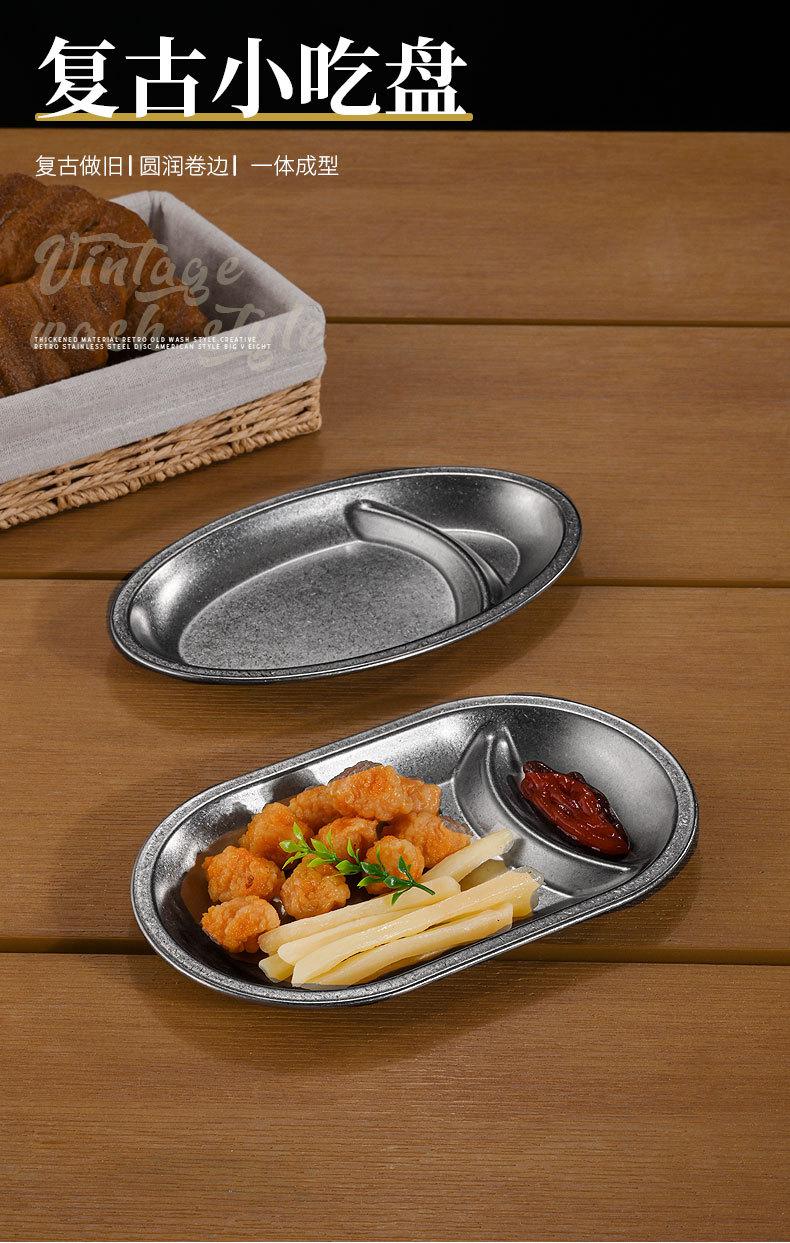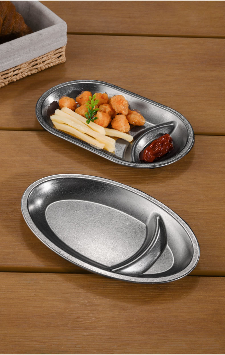 스테인레스 스틸 플레이트 타원형 식기 빈티지 올드 티 바 KTV 프라이드 프라이팬 스낵 플레이트
