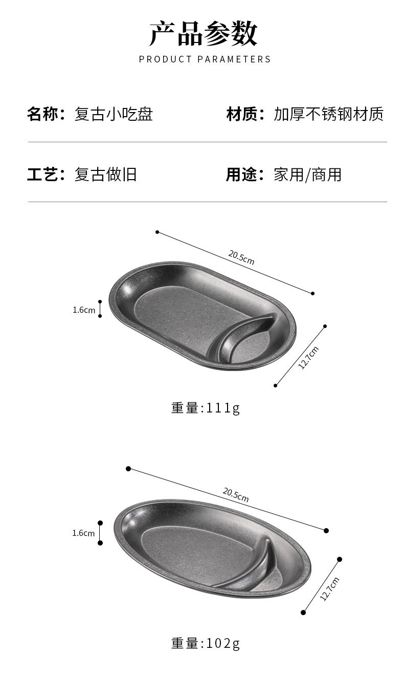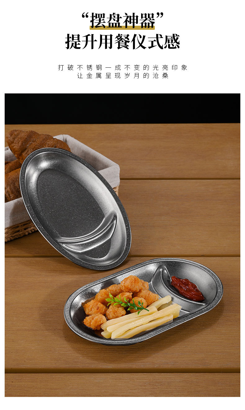 스테인레스 스틸 플레이트 타원형 식기 빈티지 올드 티 바 KTV 프라이드 프라이팬 스낵 플레이트스토어 가기
