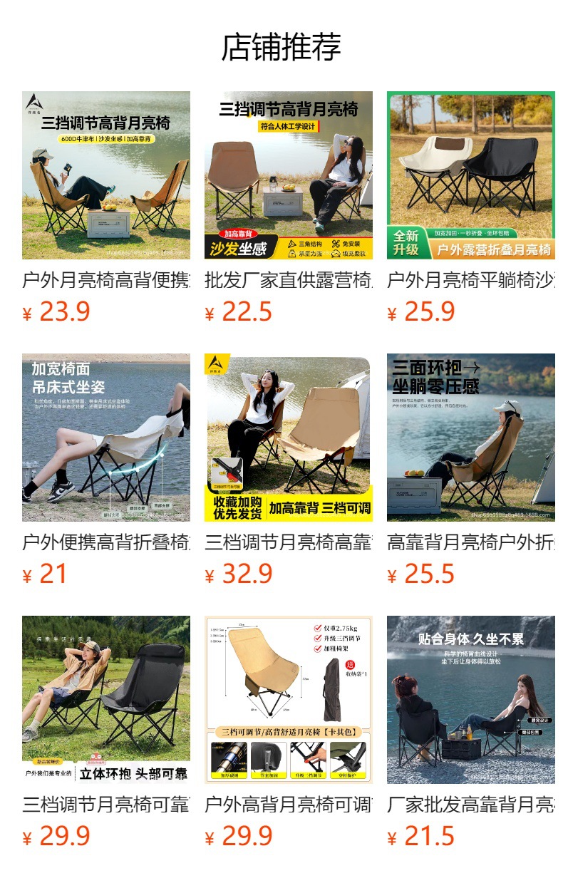 3 기어 조정 가능한 달 의자 믿을 수 있는 회상 높은 등받이 캠핑 접는 의자 휴대용 낚시 바베큐 의자 두꺼운 의자스토어 가기