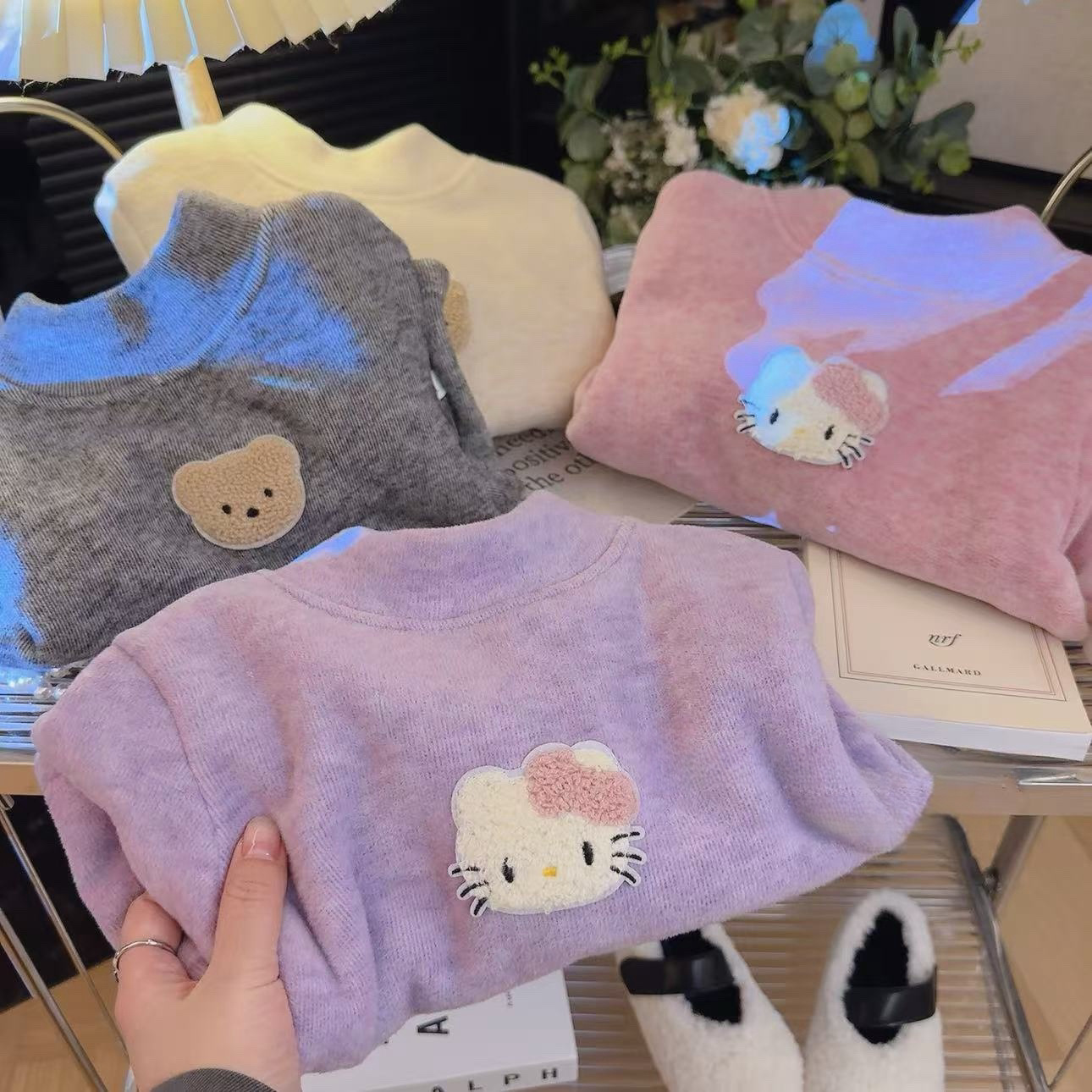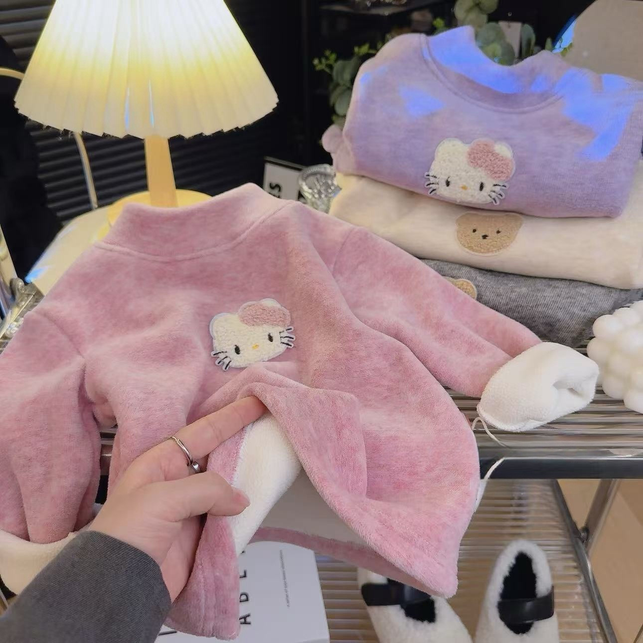 가을과 겨울 만화 다채로운 코알라 벨벳 두껍게베이스 셔츠 톱 울 실크 따뜻한 소년 소녀스토어 가기
