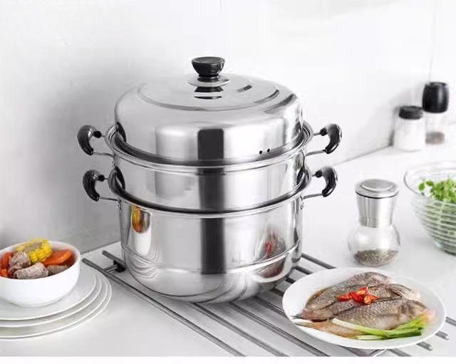 증기선 냄비 스테인레스 스틸 냄비 다층 강화 냄비 두꺼운 가정용 40CM 대형 기선 긴 Hua Geng 자수