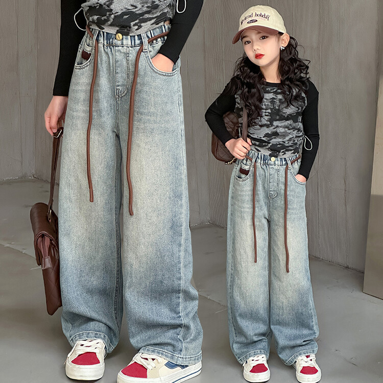 자수 넓은 다리 바지 바지 가을 패션 뉴 타월 느슨한 청바지 끈 바지 유행 한국 스타일 2024 여자스토어 가기