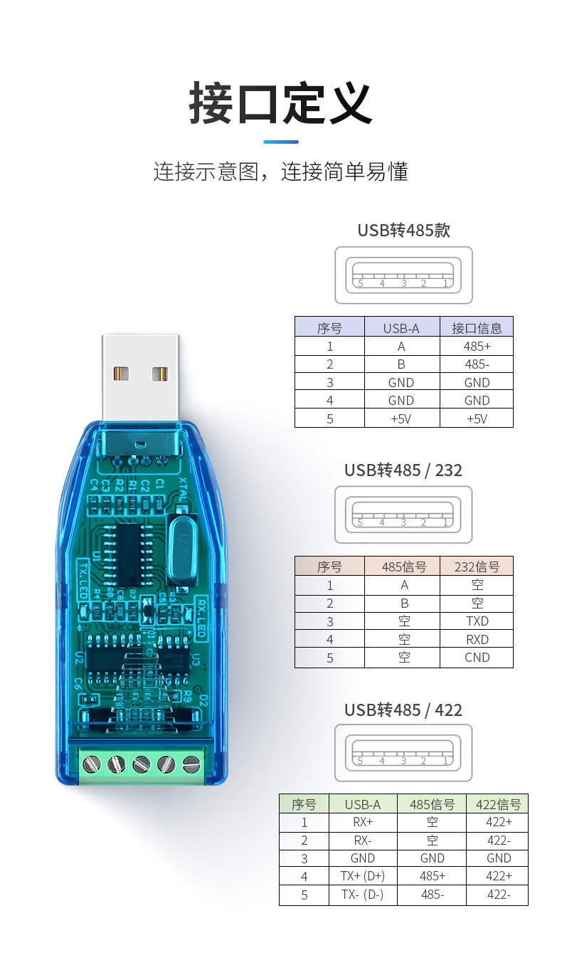 USB ~ 485/422 변환기 직렬 선 USB에서 232 어댑터 통신 모듈 직렬 신호 다운로드 라인스토어 가기