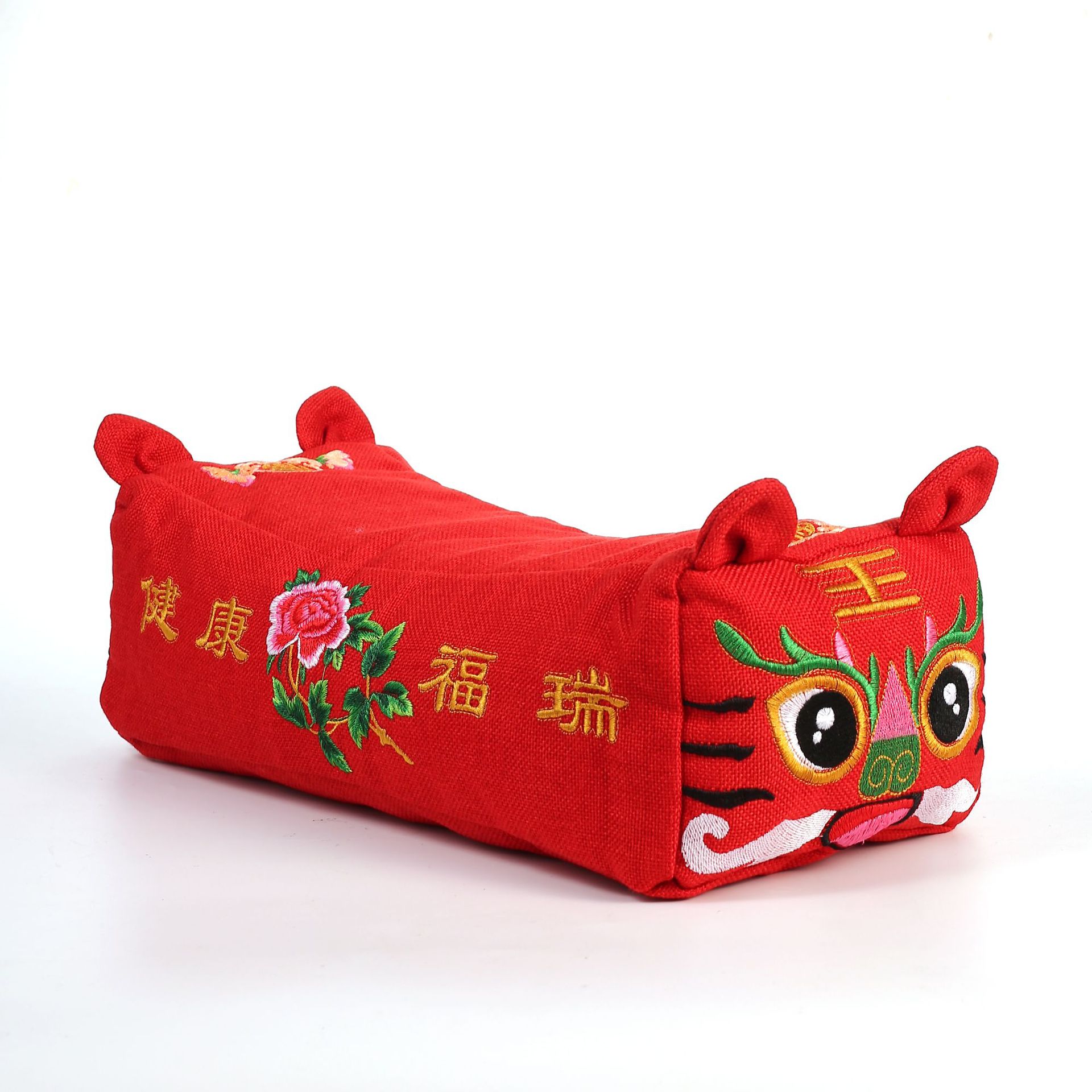 새로운 민속 자수 양두 호랑이 베개 케이스 메밀 쉘 어린이 성인 부모-자식 땀 침대 쿠션 베개