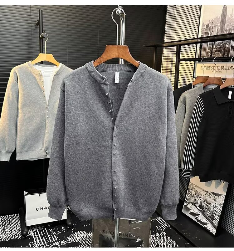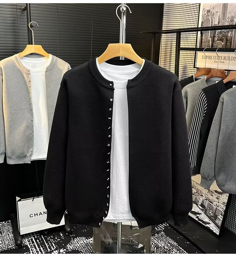 라이트 럭셔리 남성 플러스 사이즈 트렌디 브랜드 남성 패션 새로운 디자인 센스 솔리드 컬러 슬리밍 긴 슬리브 자켓 올 매치 트렌디 카디건스토어 가기